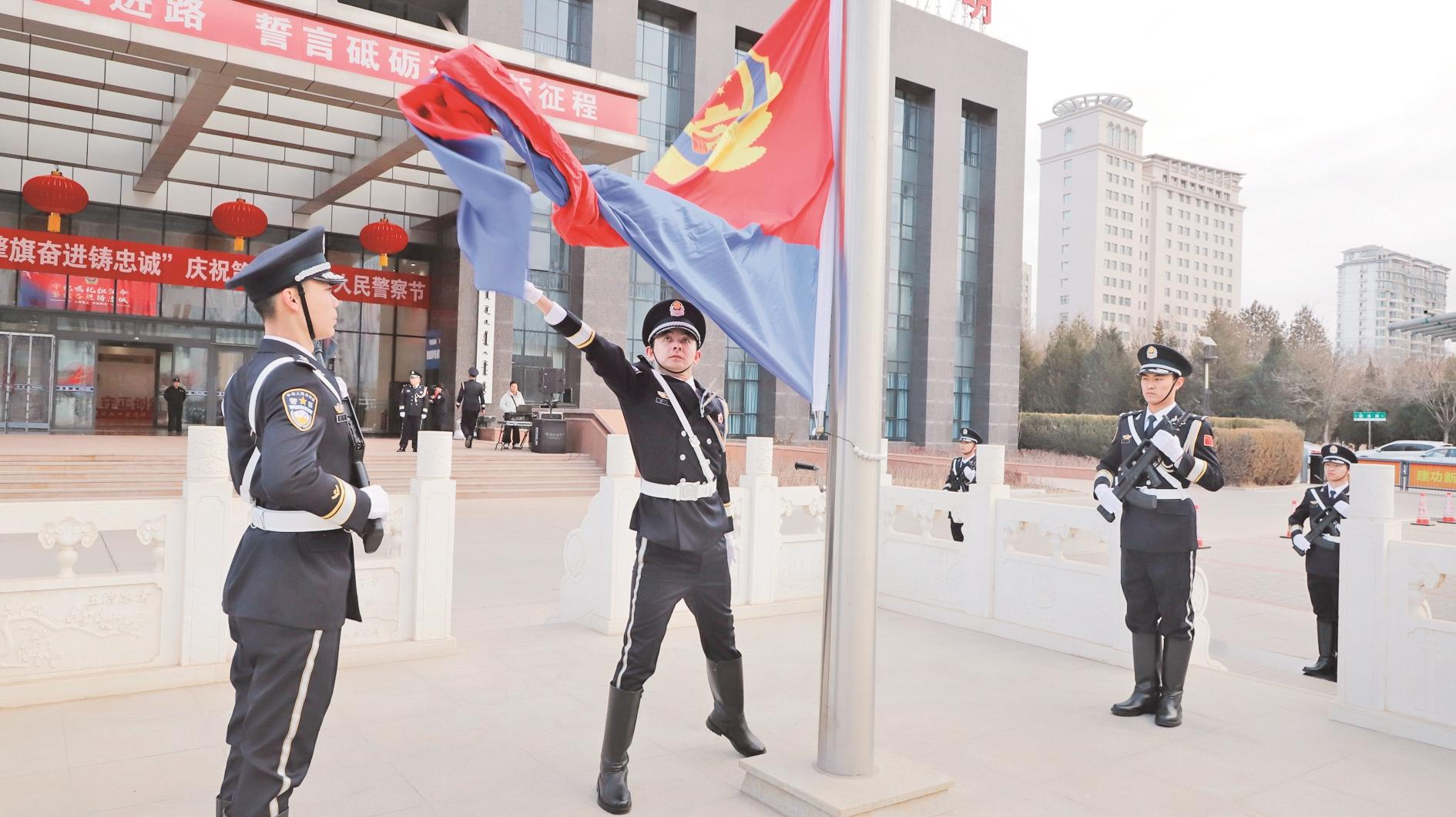 图①:1月10日,市公安局举行升警旗暨重温入警誓词仪式,引导全体民警、辅警以更加饱满的精神状态、更加昂扬的斗志,忠诚履职尽责,勇于担当作为。 (曹艺 摄)