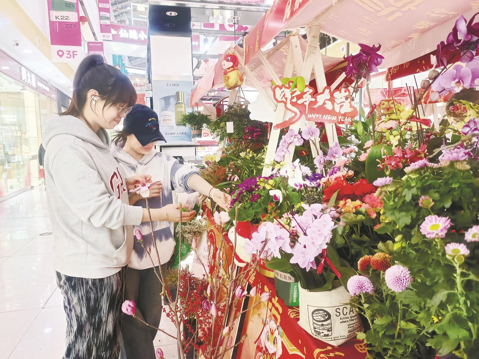 “随着消费者对花卉品质和创意要求不断提高,今年,除了蝴蝶兰、蜡梅等传统卖的比较好的花卉,一些新兴的花卉品种也崭露头角。北美冬青是今年的热销产品之一,饱满亮丽的果实挂满枝头,寓意着新的一年能够心想事成,还有一些鲜切花,比如银柳等都很受欢迎,比较好养。不同的花卉绿植,承载着人们对新年的美好期待与祝福。”某花卉店老板刘女士说。