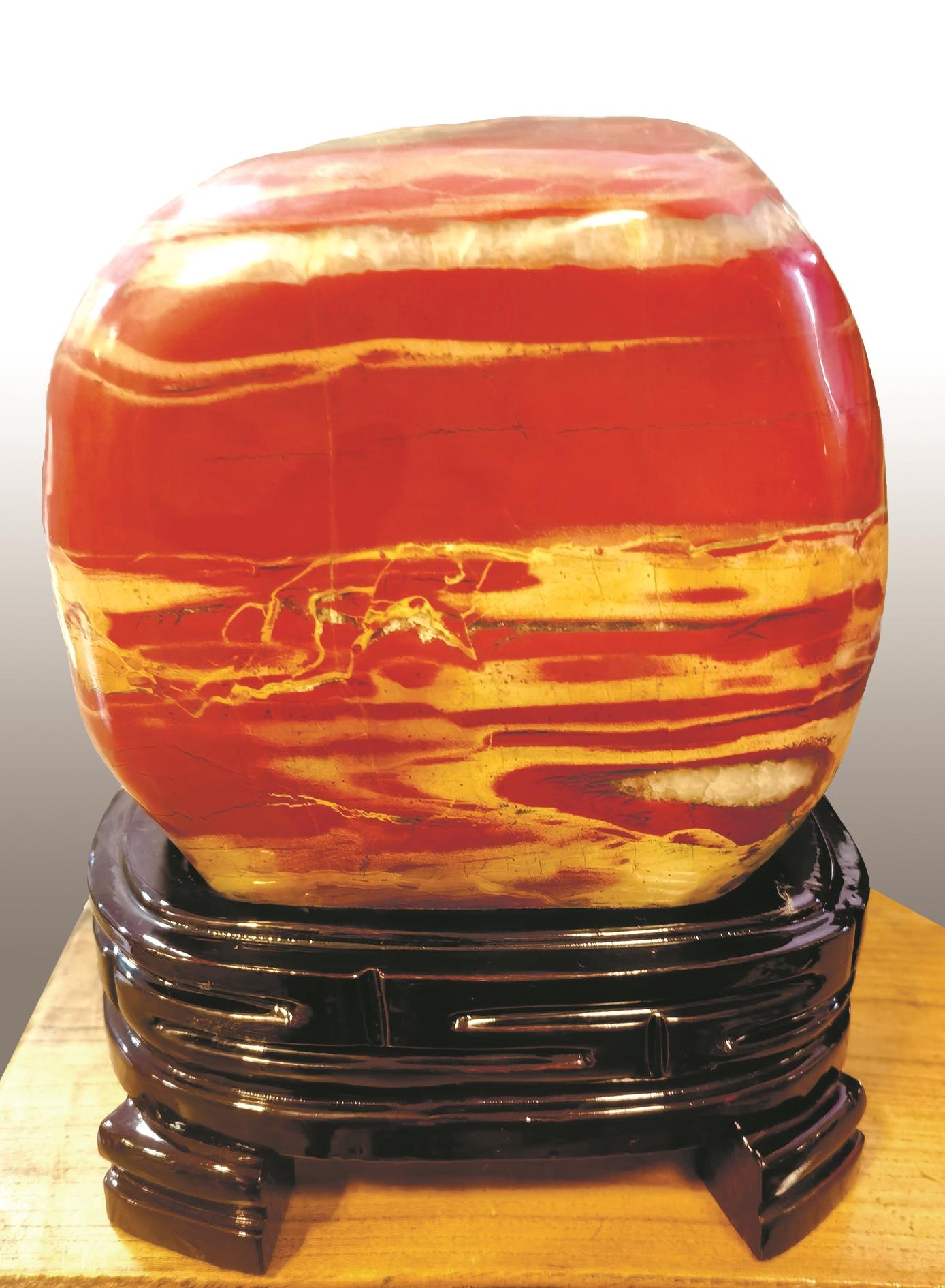 南非红碧玉玉质凝润华丽,色间搭配极佳,并伴有吉祥的山水纹、海浪纹等,每颗都似风景万千,值得细细去品。红碧玉因其纹理丰富,经历几亿年漫长岁月大自然打磨出的精致美丽,是人类艺术加工永远无法比拟的。此方红碧玉质地细润,光洁饱满,而且有内容——云水连天,风光无限。