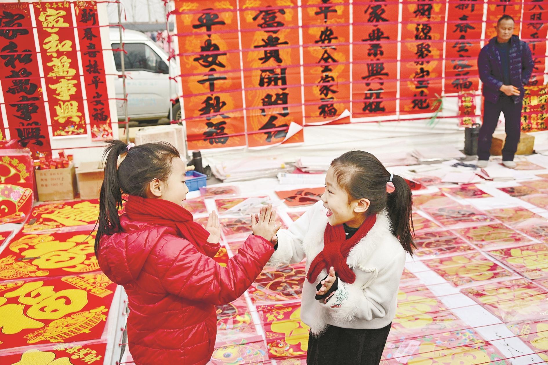 1月18日,两名小女孩在山东青岛“海洋大集”——泊里大集上玩耍。 新华社记者 李紫恒 摄