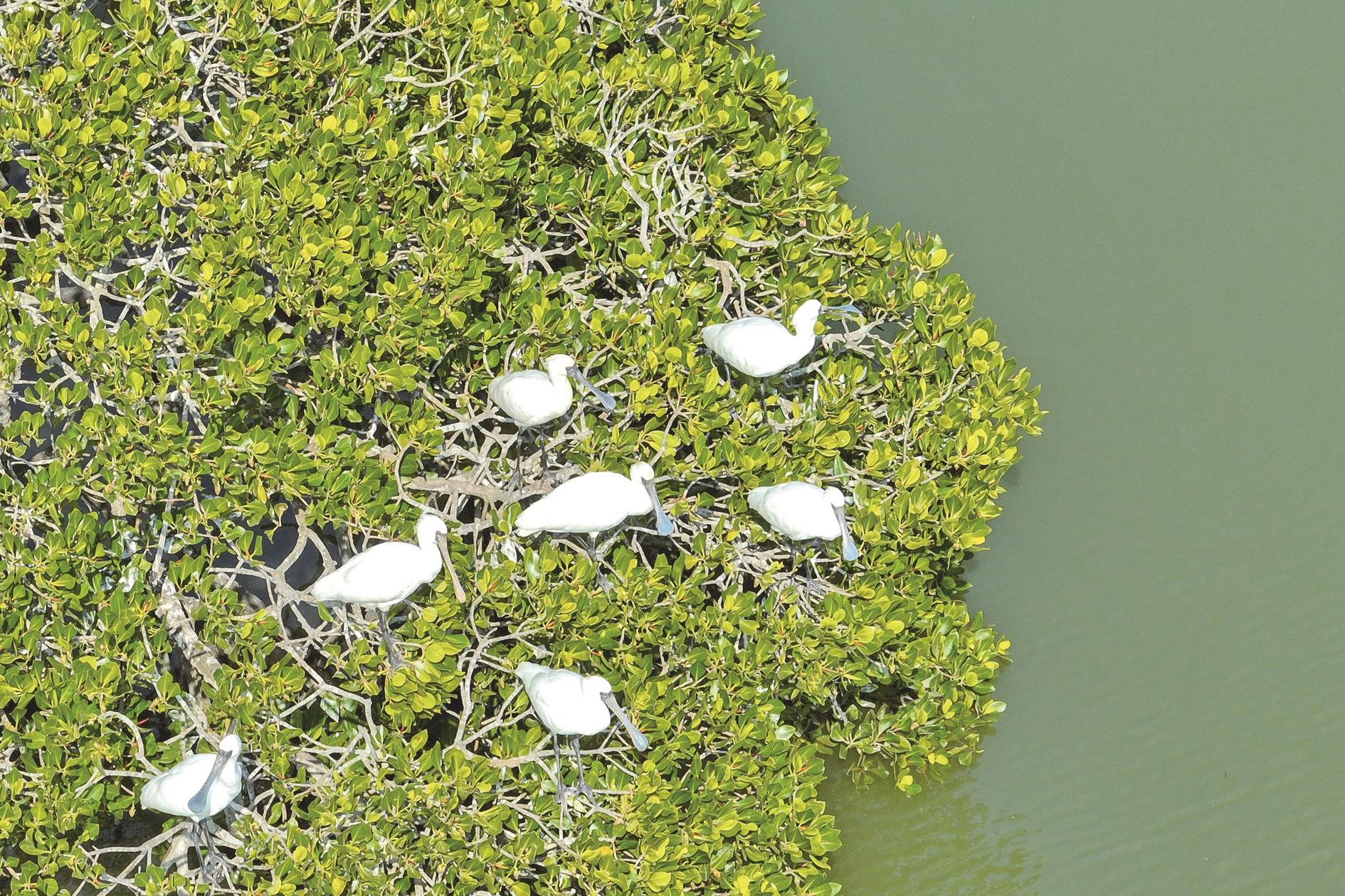 1月18日在海南儋州新盈红树林国家湿地公园拍摄的黑脸琵鹭。