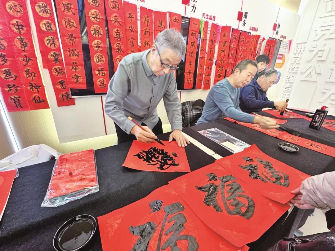 为营造欢乐祥和的节日氛围,近日,海勃湾区林荫街道办事处邀请各社区书法家爱好者来到街道党群服务中心写春联,将浓浓的年味和新春祝福送给社区居民。 (毕晓敏 摄)