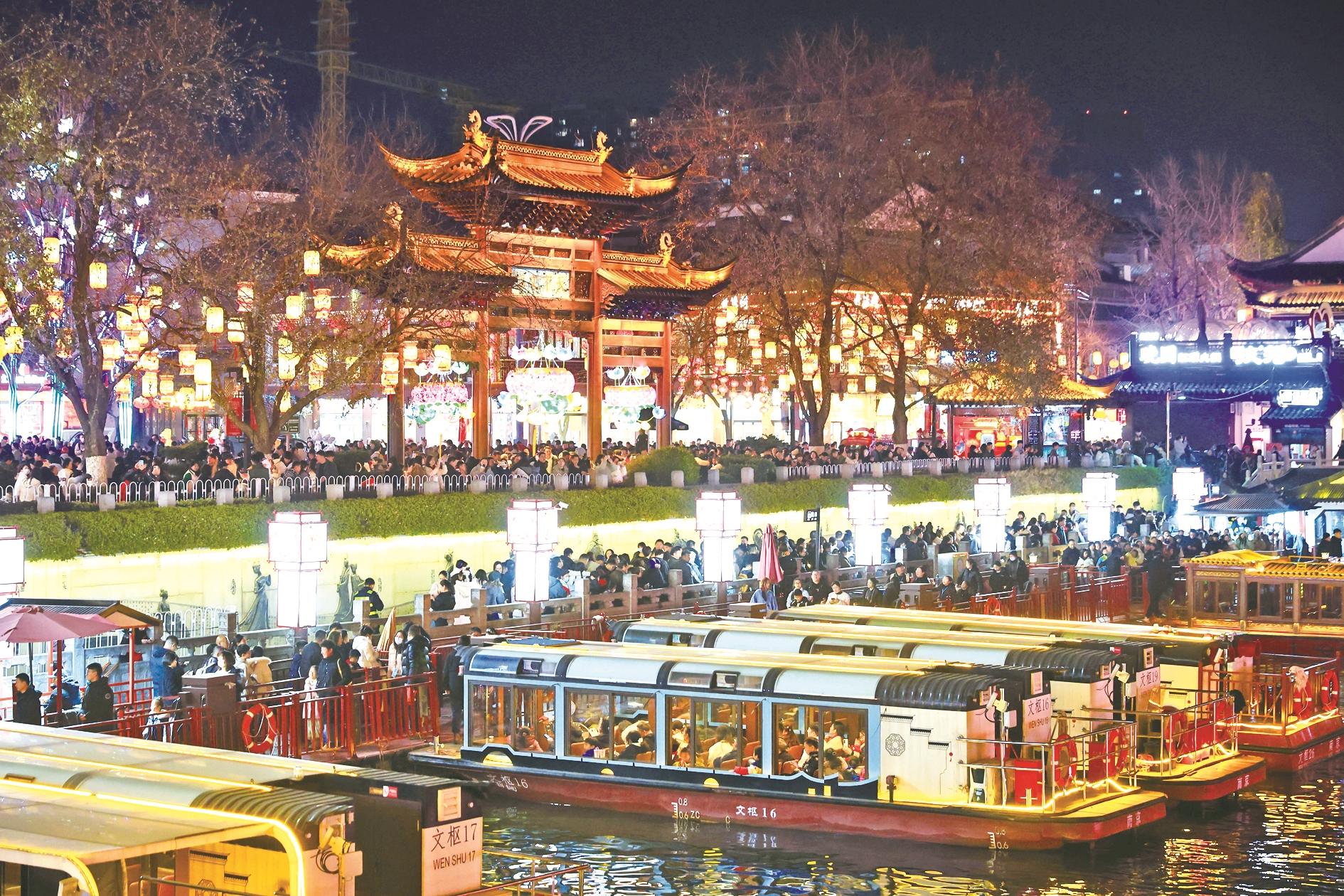 1月21日,游客在南京夫子庙景区赏灯游览。随着春节临近,各地张灯结彩,年味渐浓。 新华社发(苏阳 摄)
