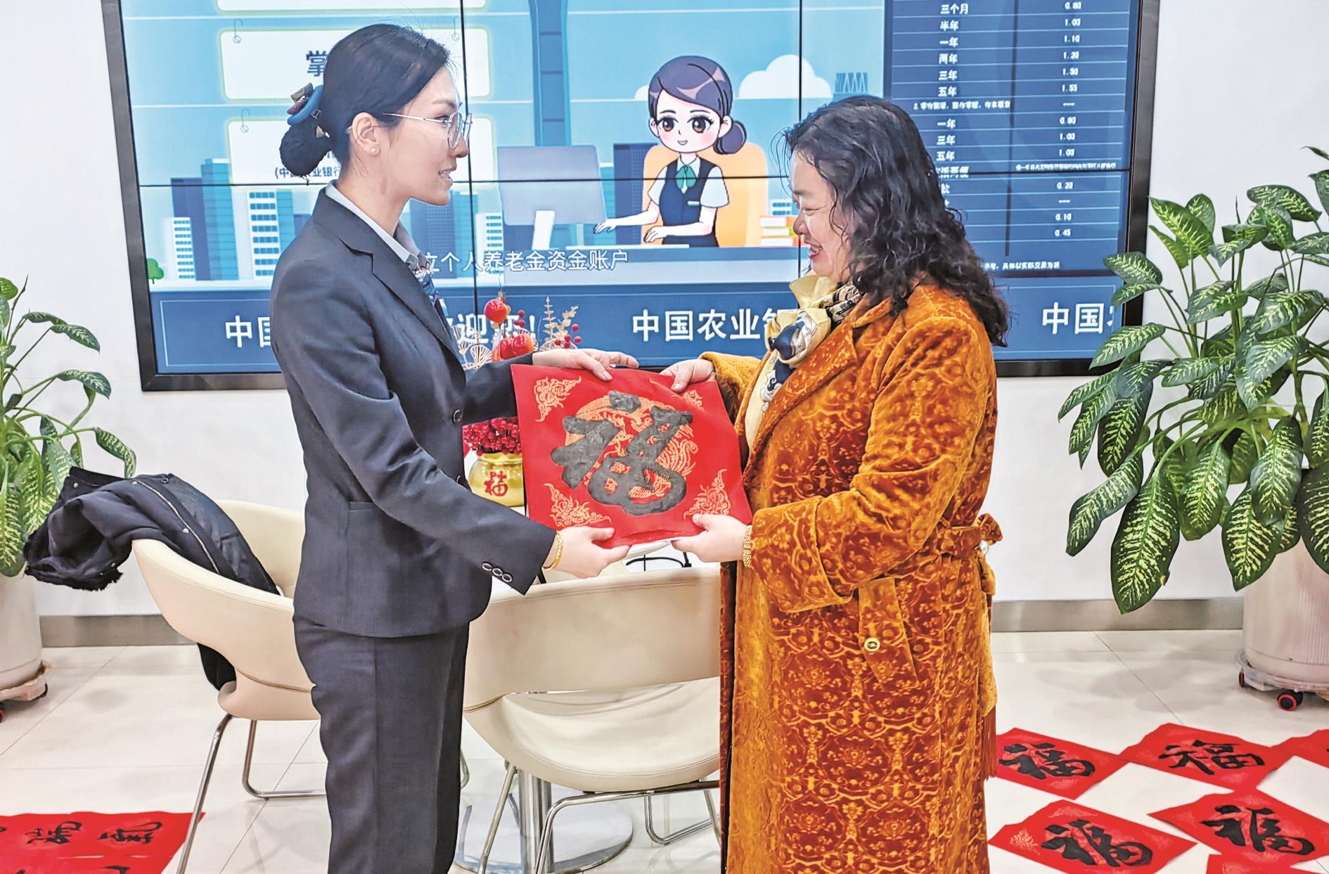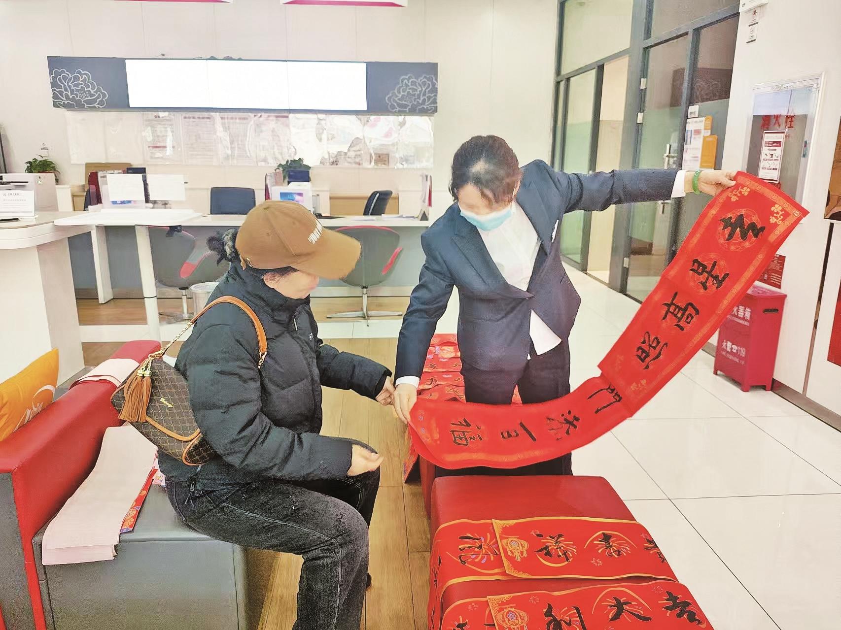 图① 农行乌海分行卓子山东街支行开展送春联活动,为即将到来的蛇年春节增添了浓郁的喜庆氛围。 (杨巧玲 摄)