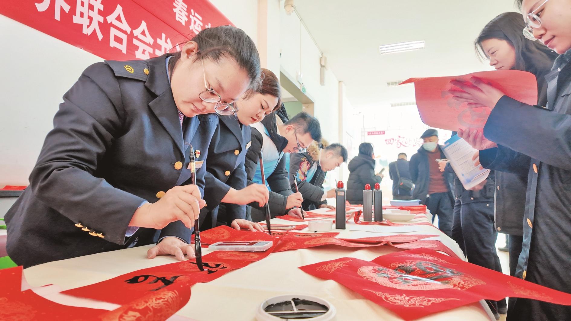 1月18日,记者走进海勃湾区富达市场看到,红彤彤的灯笼和中国结挂饰、喜气洋洋的春联字画,特色的蛇年红包及各式窗花将店铺装扮一新,一派中国红的景象,好不喜庆热闹。“春节是咱中国人一年中最重要的节日,虽说每年春节前的忙碌都会把人累得够呛,但准备年货时的欣喜却一点不会打折,每年来选购春联、年画、‘福’字的时候真是觉得格外高兴。”正在选购春联的李女士说。她过年前都会带着孙子一起来选购春节装饰用品,为的就是把年俗和年味传承下去。