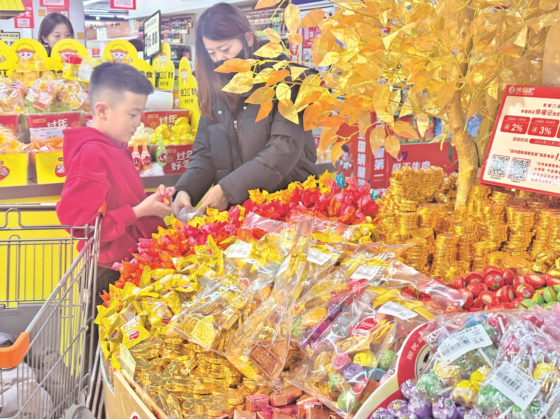 当下,不仅春节饰品销售店铺人流量火爆,我市各大超市也纷纷开启“年货”模式,提前备足货源、丰富品种,满足群众就近购物的需求。商家卖得热火朝天,市民买得欢天喜地。