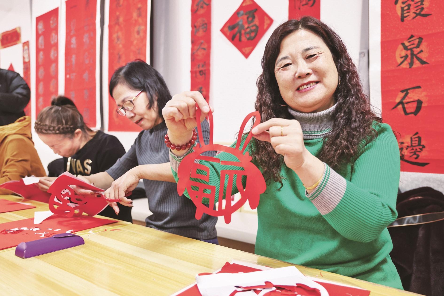 海勃湾区新华西街道海达社区开展了“剪出新年喜悦,传承文化之美”剪纸活动。大家围坐在桌边,一边热烈讨论着剪纸的技巧,一边按步骤认真操作,不一会儿,简单的纸张在指尖焕发出了别样风彩。 (高瑞鹏 摄)