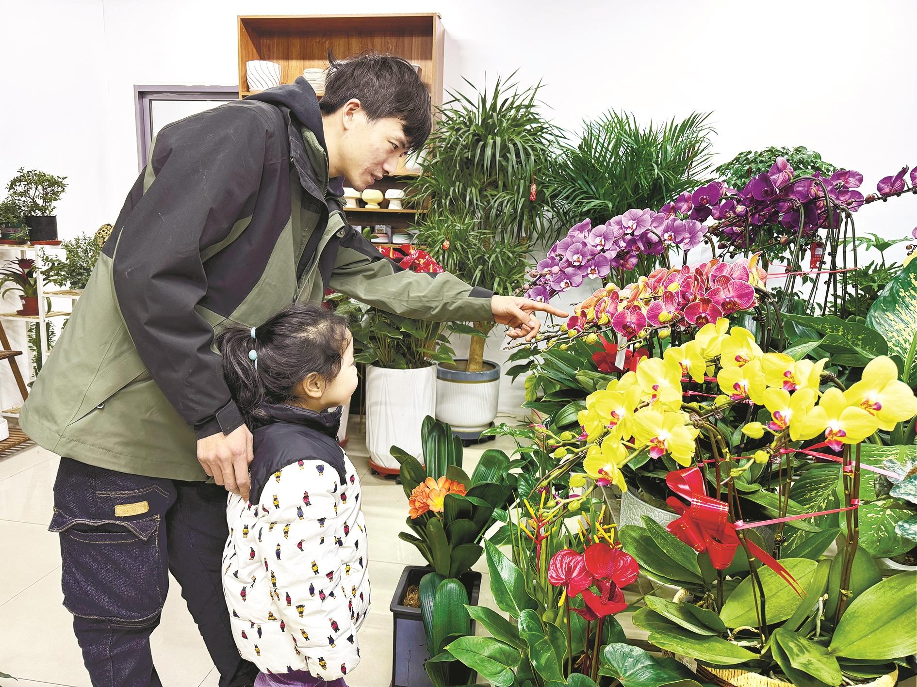 买盆鲜花迎新春。 (段维娜 摄)