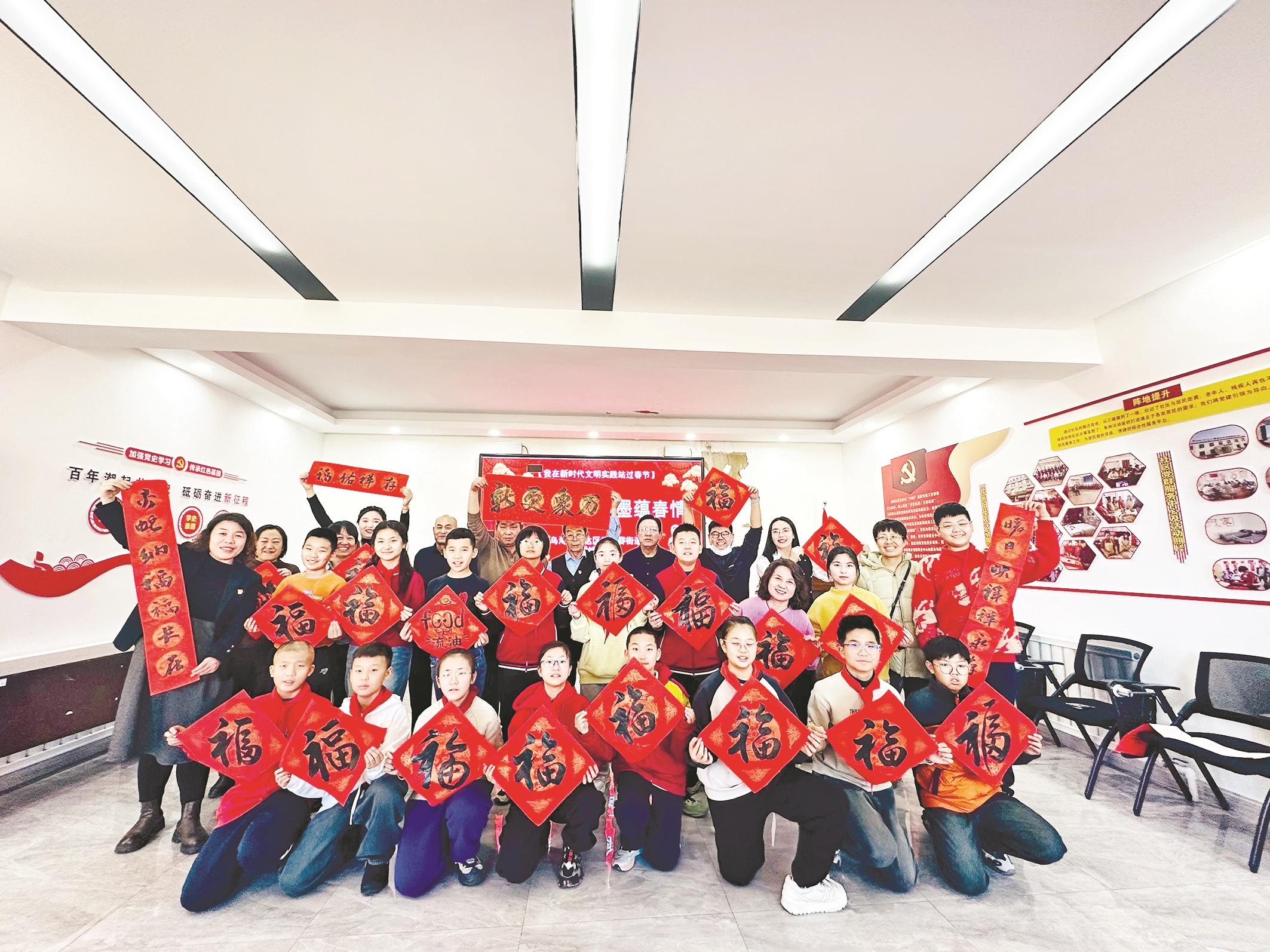 乌达区巴音赛街道幸福社区开展写春联、送祝福活动。(段维娜 摄)