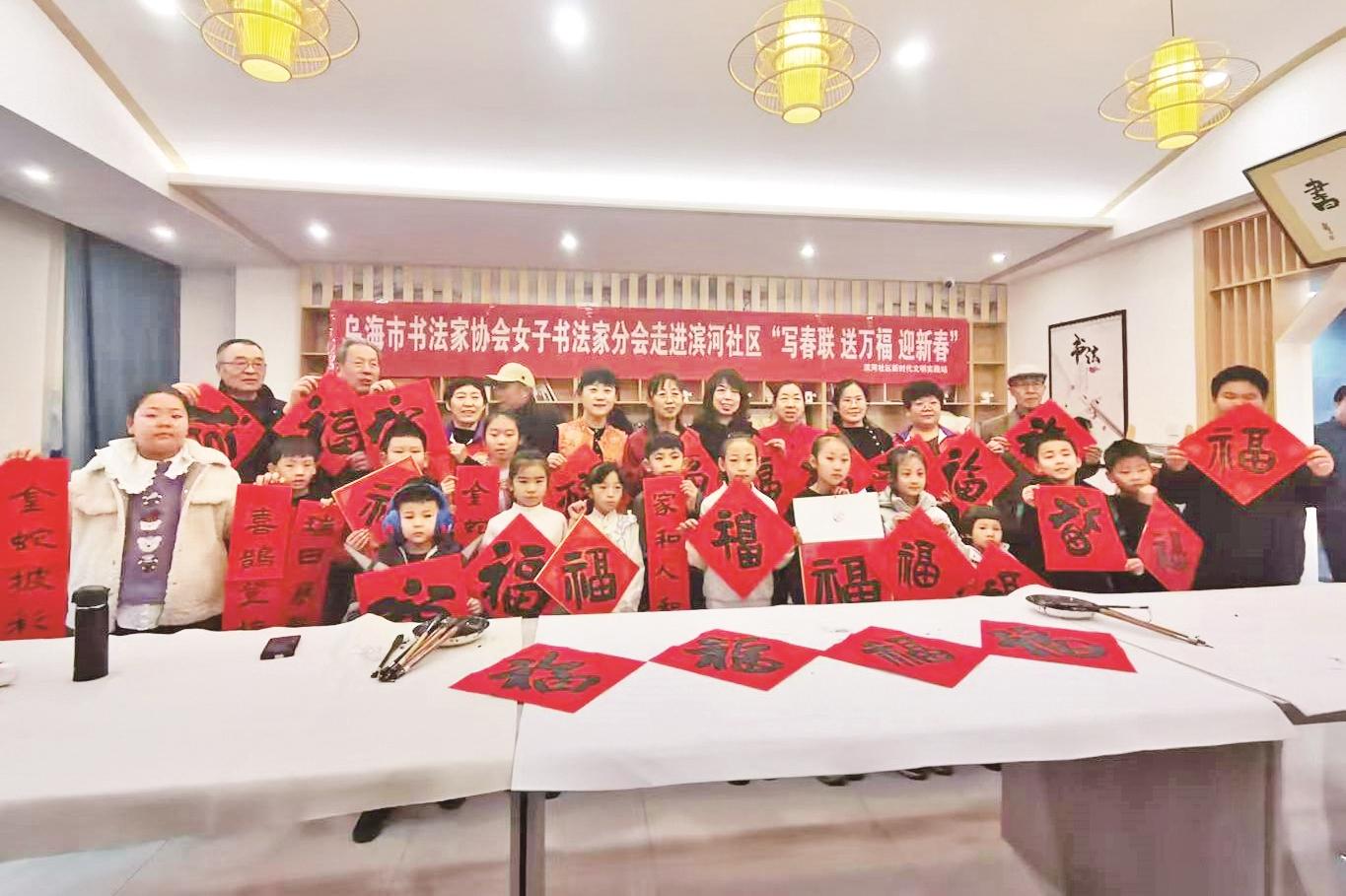 近日,市书法家协会女子书法家分会走进海勃湾区滨河街道滨河社区开展“写春联 送万福 迎新春”活动。