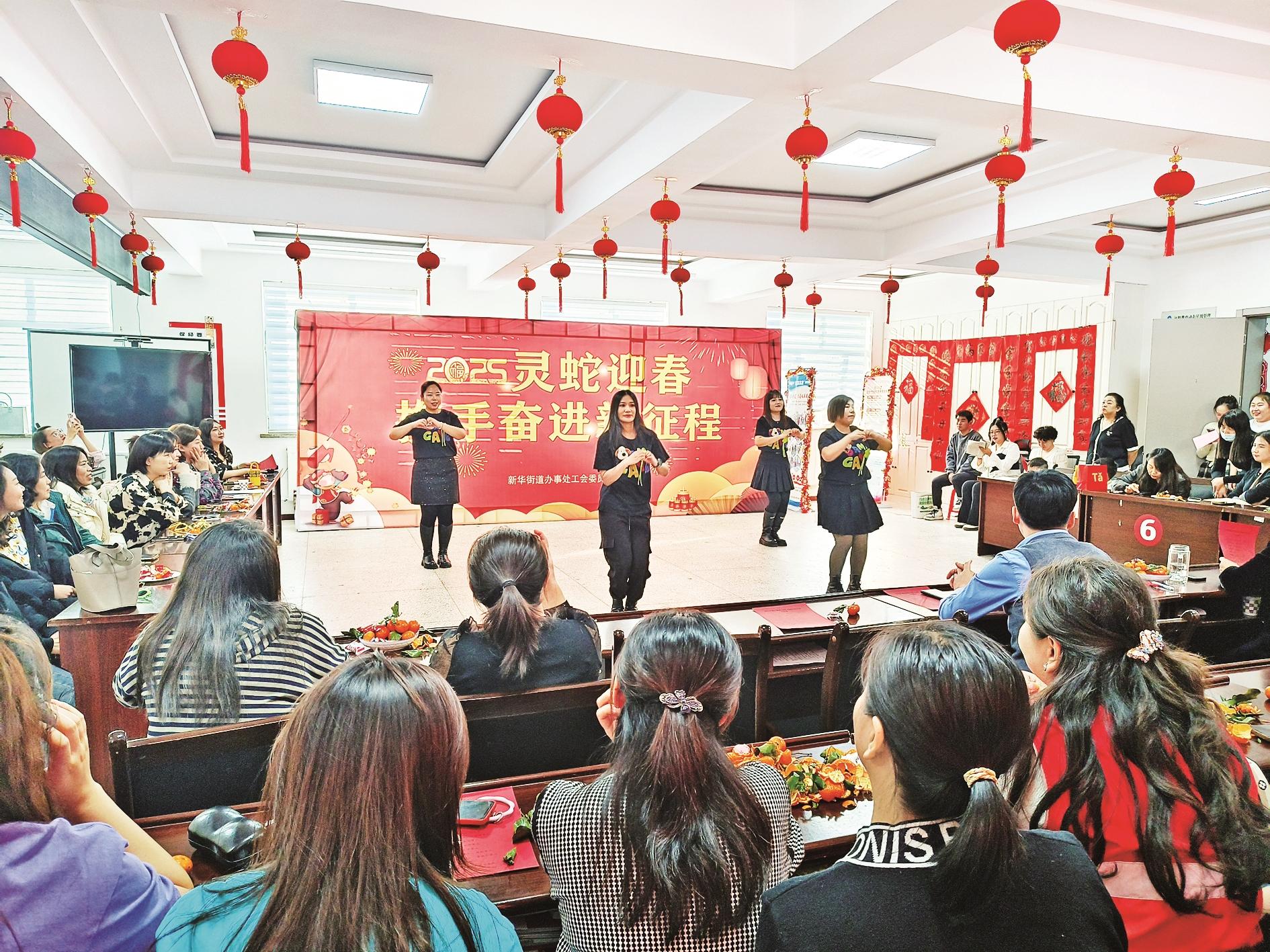 1月20日,海勃湾区新华街道举办“2025灵蛇迎春携手奋进新征程”新春联欢会,旨在进一步丰富街道干部职工的精神文化生活,营造欢乐祥和、喜庆热烈的节日氛围。(郭威 摄)