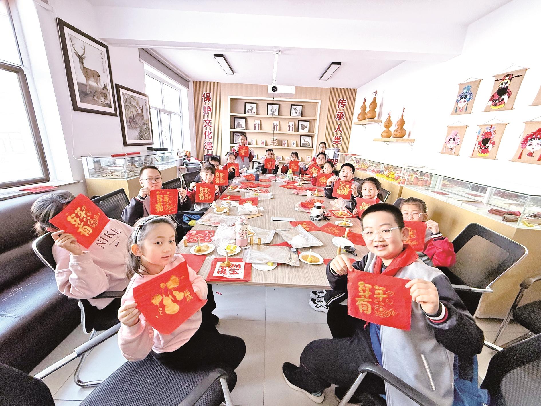 1月20日,海勃湾区凤凰岭街道公园社区新时代文明实践站开展“春联妙笔·拓印传情”迎新春活动。 (段维娜 摄)