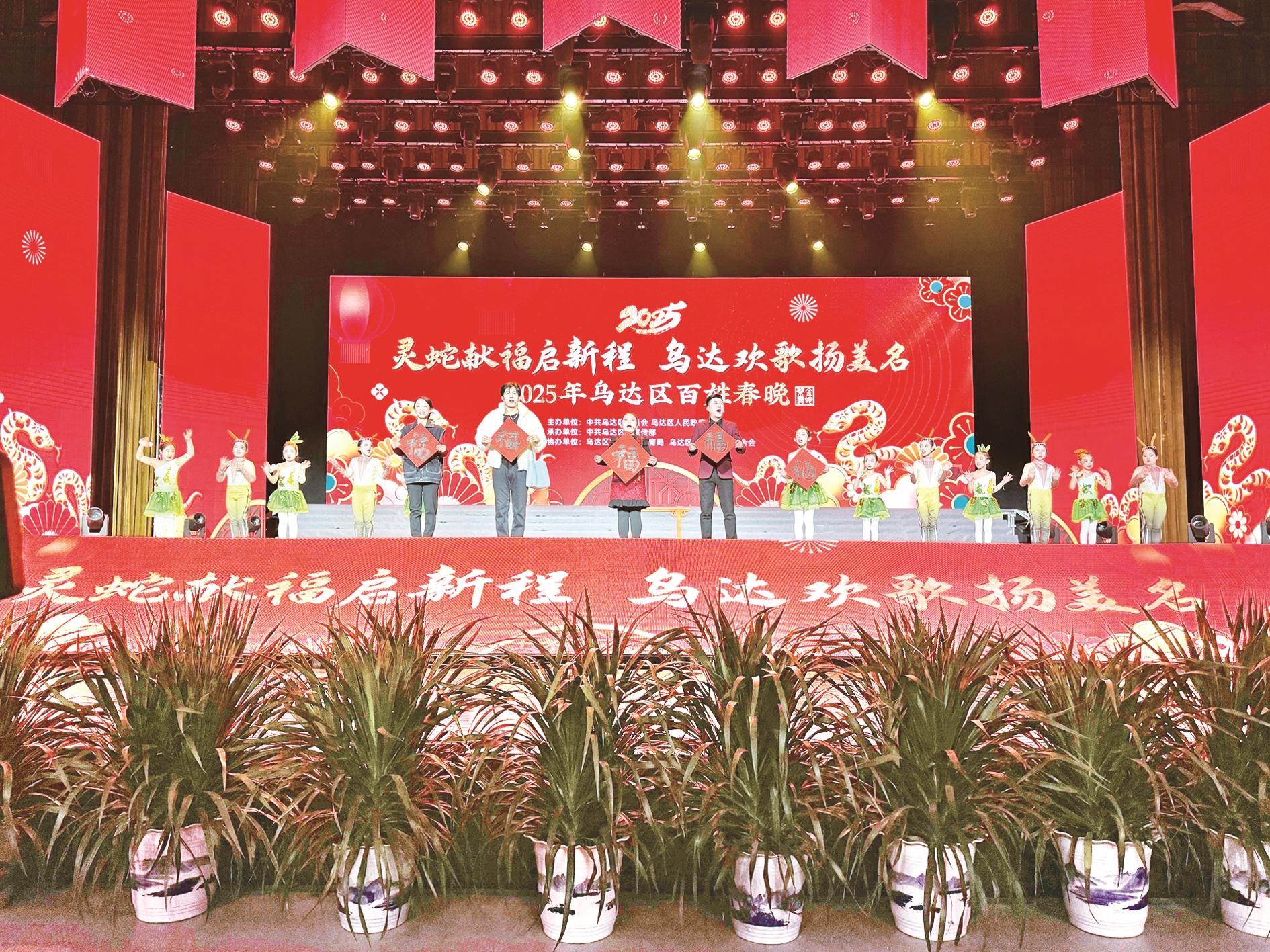 为了欢庆乙巳蛇年的来临,1月18日,由中共乌达区委员会、乌达区人民政府主办,中共乌达区委宣传部承办的“灵蛇献福启新程 乌达欢歌扬美名”2025年乌达区百姓春晚在当代中国书法艺术馆上演。 (段维娜 摄)
