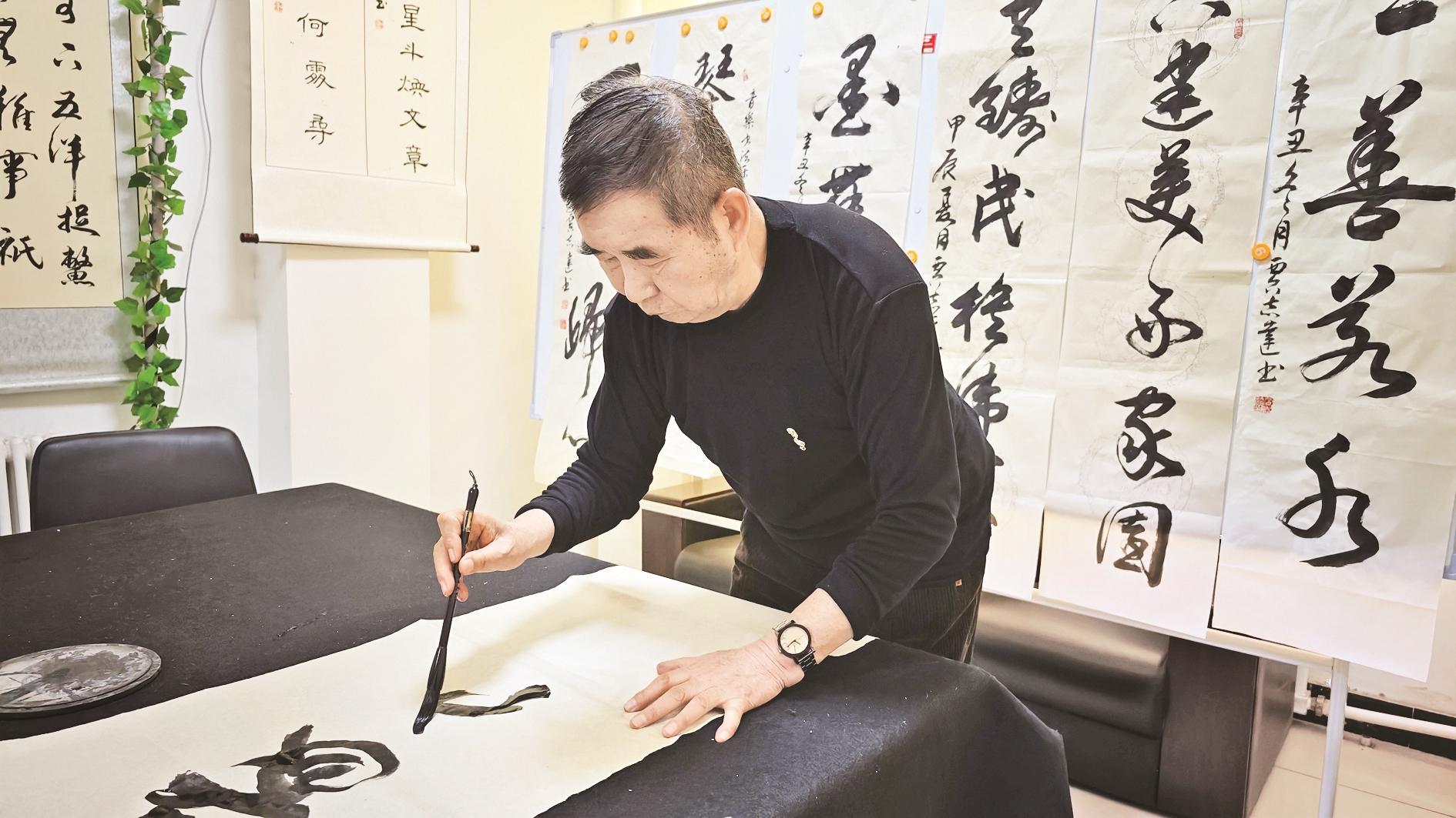 谈及书法创作,他说:“书法练习,贵在临帖。临帖是书家学习书法的必修课,也是贯穿书家书法创作始终的基础所在,否则就是所谓的‘江湖体’。书家在临帖基础上,要集各家所长,融入自己的思想进行创作,写出真正属于自己的作品。” (张文杰 文/图)