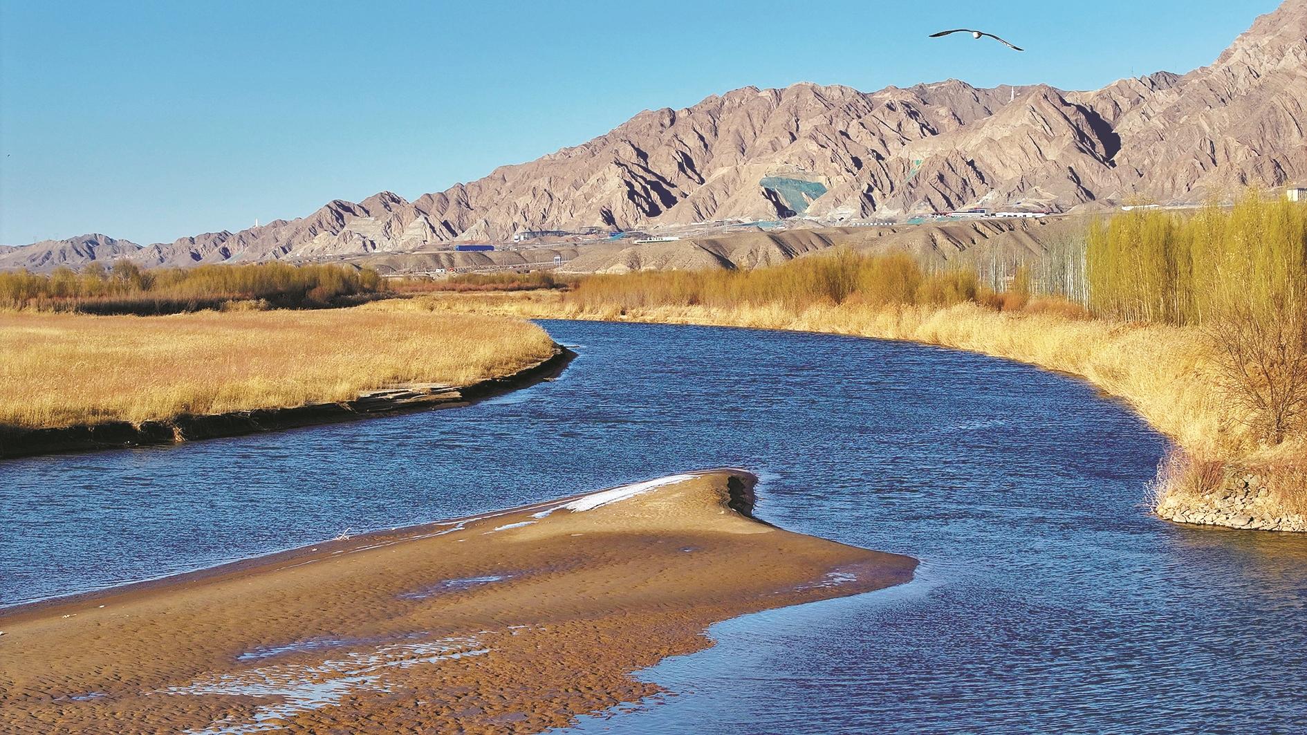 这是2月4日在宁夏中宁县境内拍摄的黄河景色。立春时节,黄河宁夏段两岸芦苇飘荡,风光壮美。