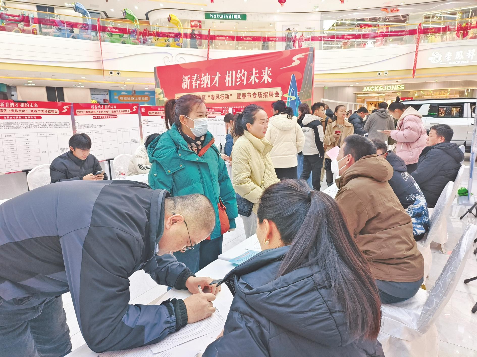 2月4日,海勃湾区人力资源和社会保障局联合阿拉善高新技术产业开发区、乌兰布和生态沙产业示范区等多家单位在乌海万达广场共同举办了“新春纳才 相约未来”2025年海勃湾区“春风行动”暨春节专场招聘会,满足春节后企业开工复产用工需求。