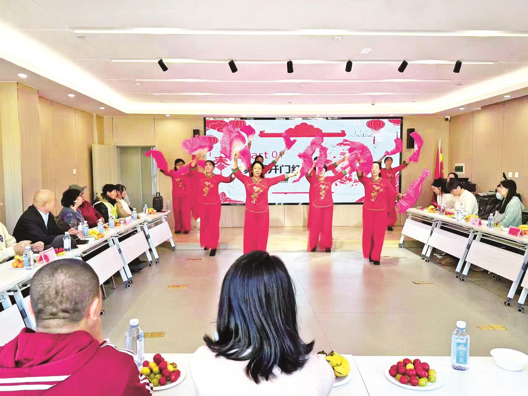 图③:海勃湾区海北街道黄河社区举办金蛇迎春文艺联欢会,歌舞、游戏、制作花篮,喜气洋洋的氛围让居民们感受传统节日的魅力。 (张楚研 摄)