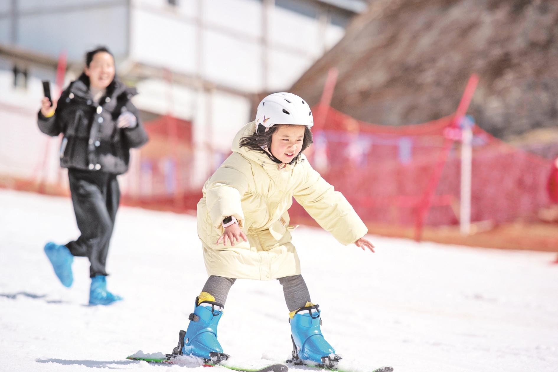 2月10日,游客在昆明市轿子雪山室外滑雪场滑雪。位于昆明北部的轿子雪山,是中国纬度最低的冬季积雪山峰之一。近年来,当地积极挖掘冰雪资源,开发旅游项目,使“冷”资源焕发出“热”活力,吸引海内外游客纷至沓来。据介绍,轿子雪山室外滑雪场目前已建成的可用滑雪道面积达数万平方米,高峰期日均接待游客可达2000人次以上。