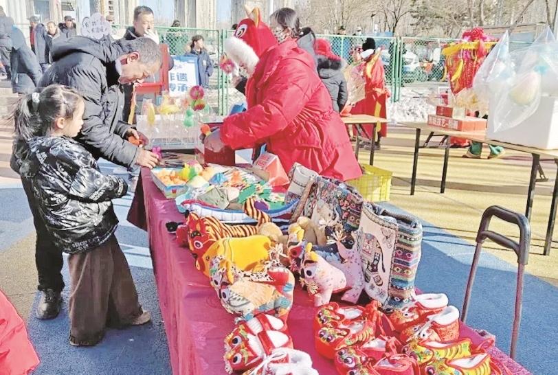 海勃湾区林荫街道海馨社区开展花式闹元宵活动,图为非遗集市。(段维娜 摄)