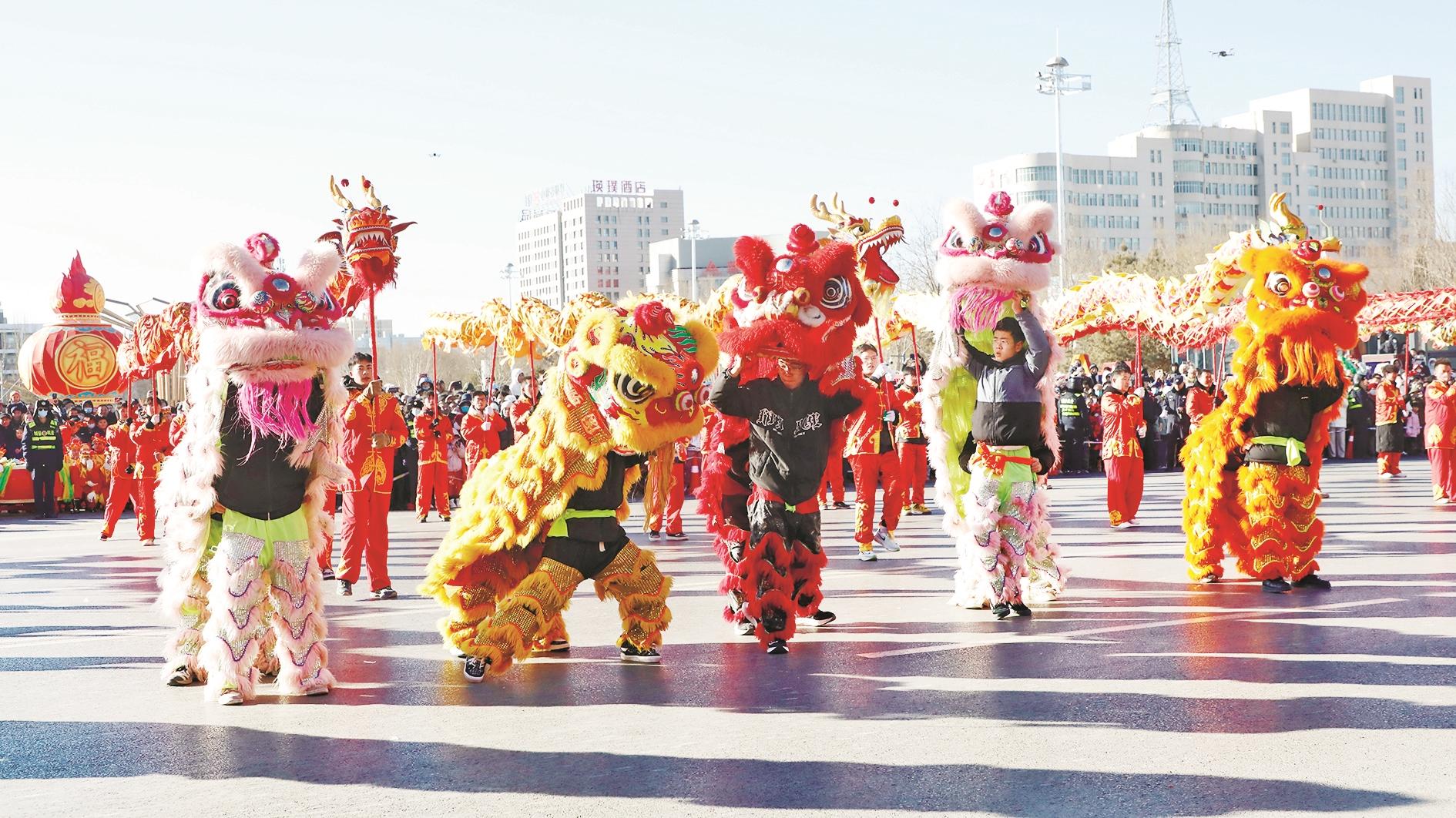 2月12日,“幸福北疆 团圆乌海”元宵节主题活动举行,给广大市民带来了一场丰富多彩的文艺盛宴。图为海勃湾区社火巡游现场。(赵政宇 摄)