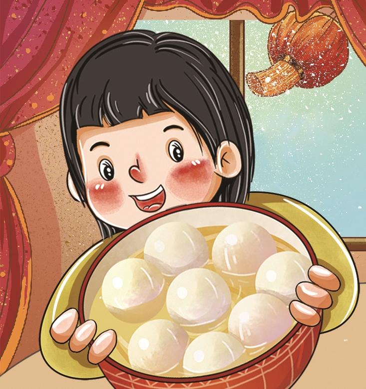 天麻麻亮,母亲已起床,案板上摆着两个盆。一个盆里是提前磨好的汤圆面,一个盆上放筲箕。母亲在汤圆面里一边缓缓加水,一边用拳头揉。揉着揉着,天已大亮,父亲打开堂屋的大门,清扫院坝,给牛羊喂草。树上的喜鹊“喳喳、喳喳”叫着,欢快的声音进入屋子。“喜鹊叫,有客到。”母亲灵巧的手揉得更欢了。水和汤圆面融为一体,不分彼此。