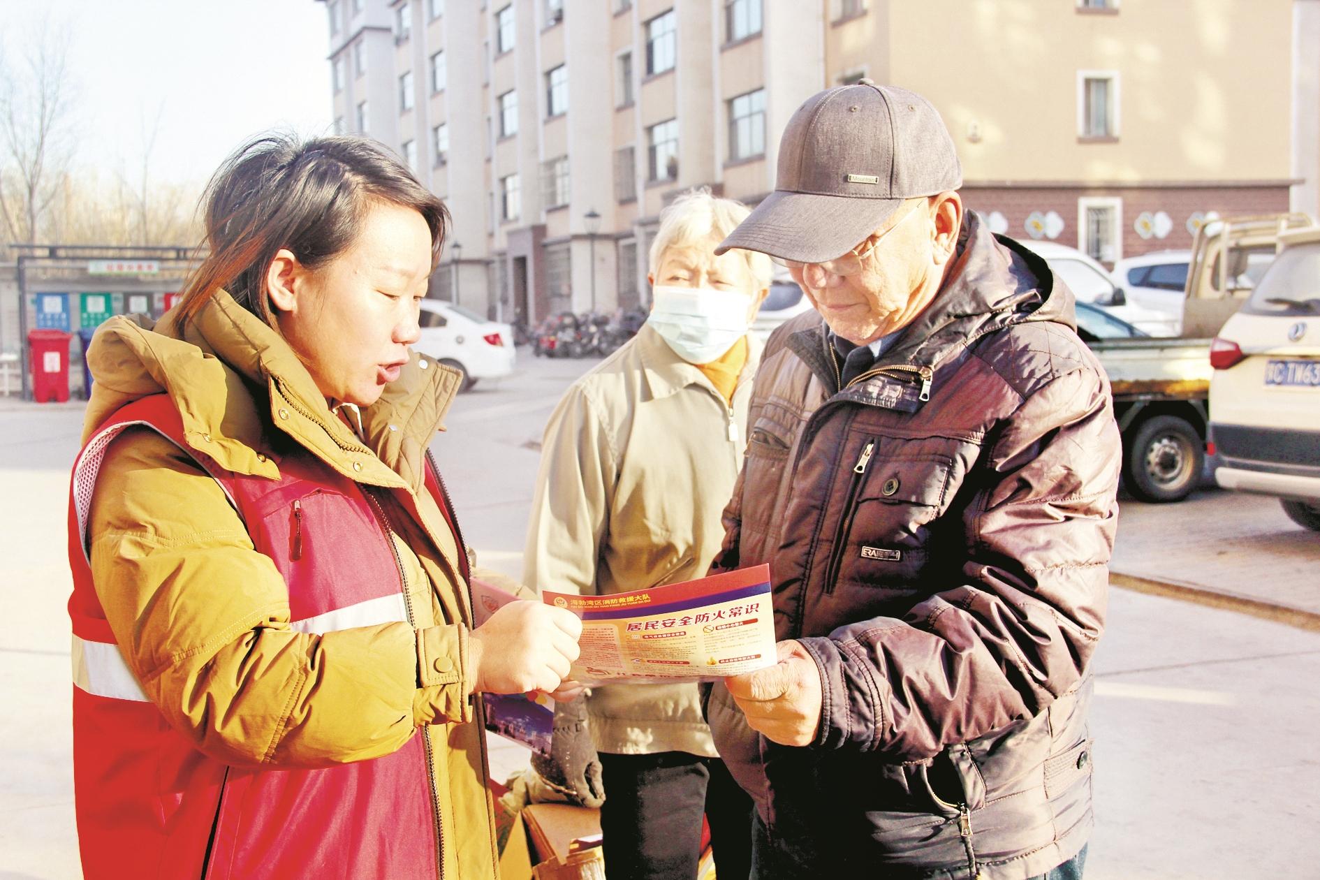 近日,海勃湾区新华西街道滨水社区工作人员对所属辖区开展了消防安全督查及宣传,筑牢安全防线。 (陈洋 摄)