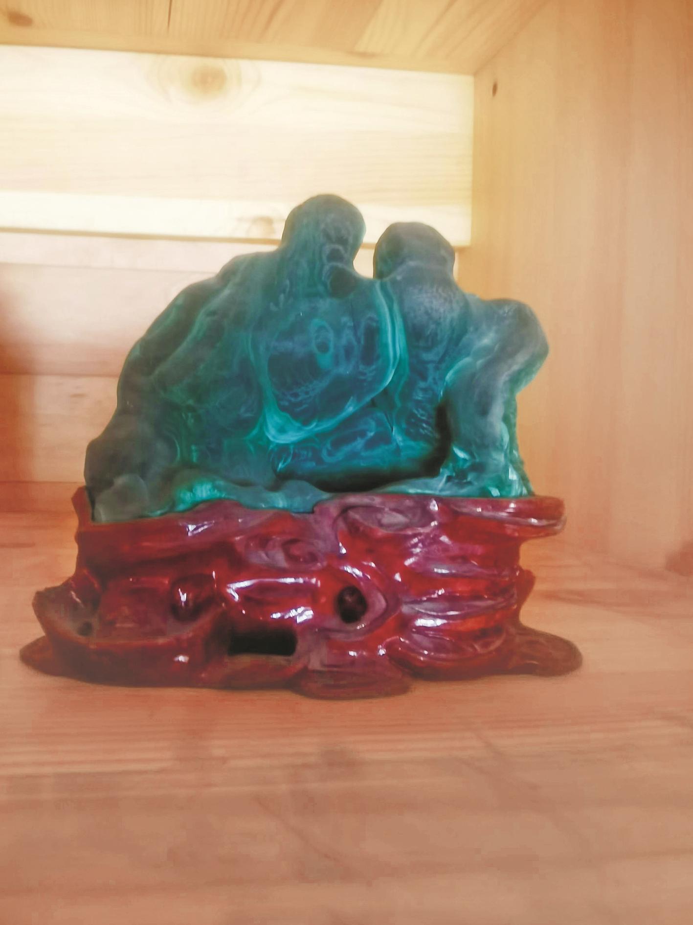 孔雀石虽色彩较为单一但看上去却不单调。如果说中国画墨分五色,孔雀石则绿得五光十色,兼之千姿百态,丰富无比,令人赏心悦目,遐思万端。 (收藏:金诚 文字:张宝桥)