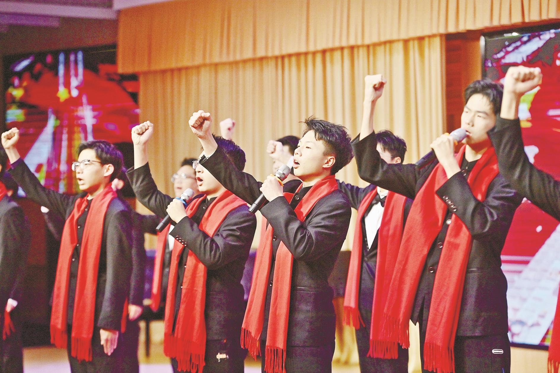2月17日,广西梧州市开展“求实创新共成长,团结筑梦向未来”开学第一课主题活动。这是梧州市第八中学学生演唱歌曲《中国人》。当日,全国各地举办了多种多样的“开学第一课”主题活动。 新华社记者 黄孝邦 摄