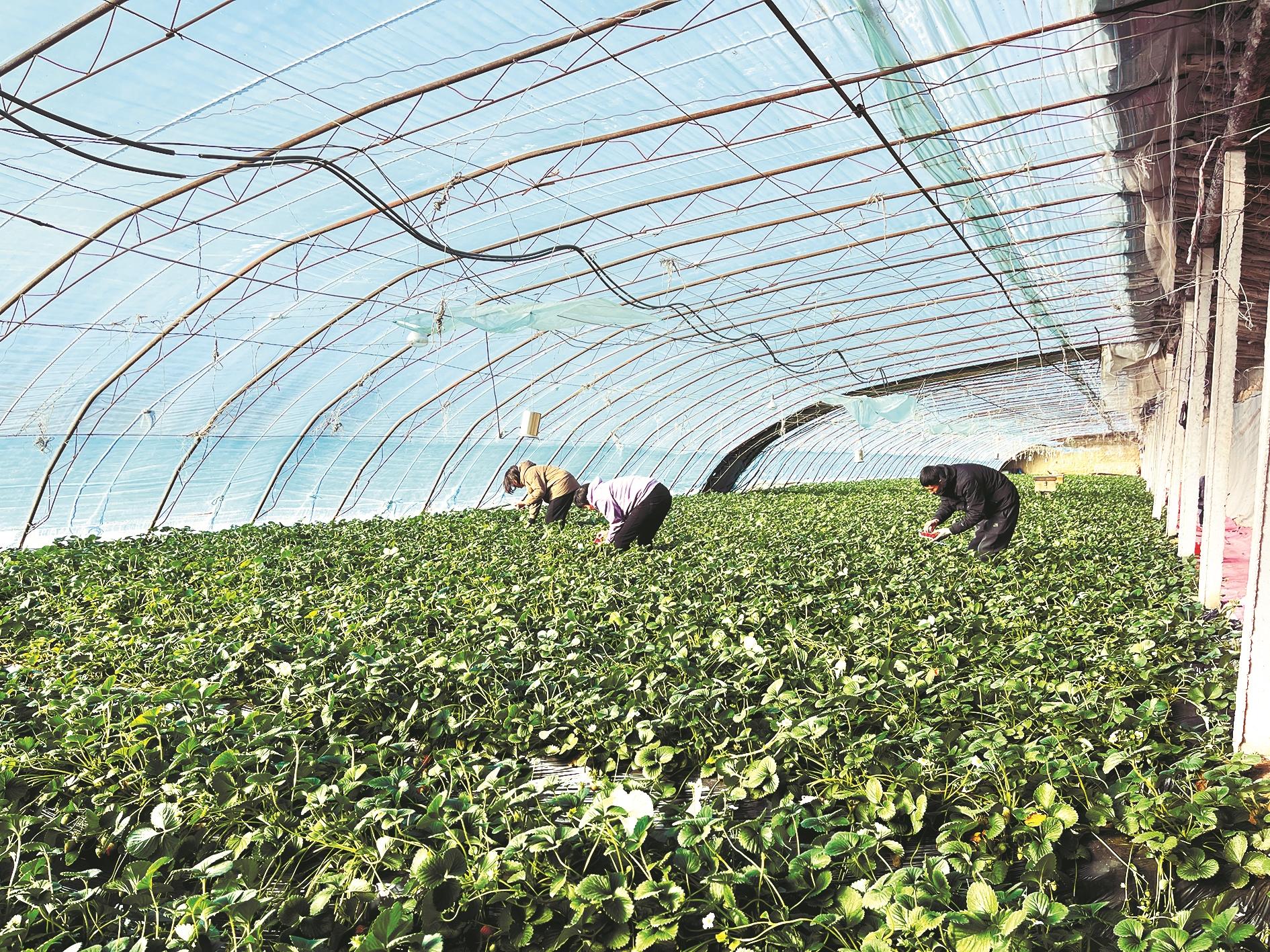 近日,乌达区乌兰淖尔镇泽园新村种植的温室大棚反季节农产品陆续成熟上市。草莓、西红柿等特色农产品凭借好口感、高品质赢得消费者青睐。种植户通过进园采摘、农超直联、组织团购等方式拓宽农产品销售渠道,吸引众多游客前来观赏、采摘。图为游客在泽园新村采摘草莓。