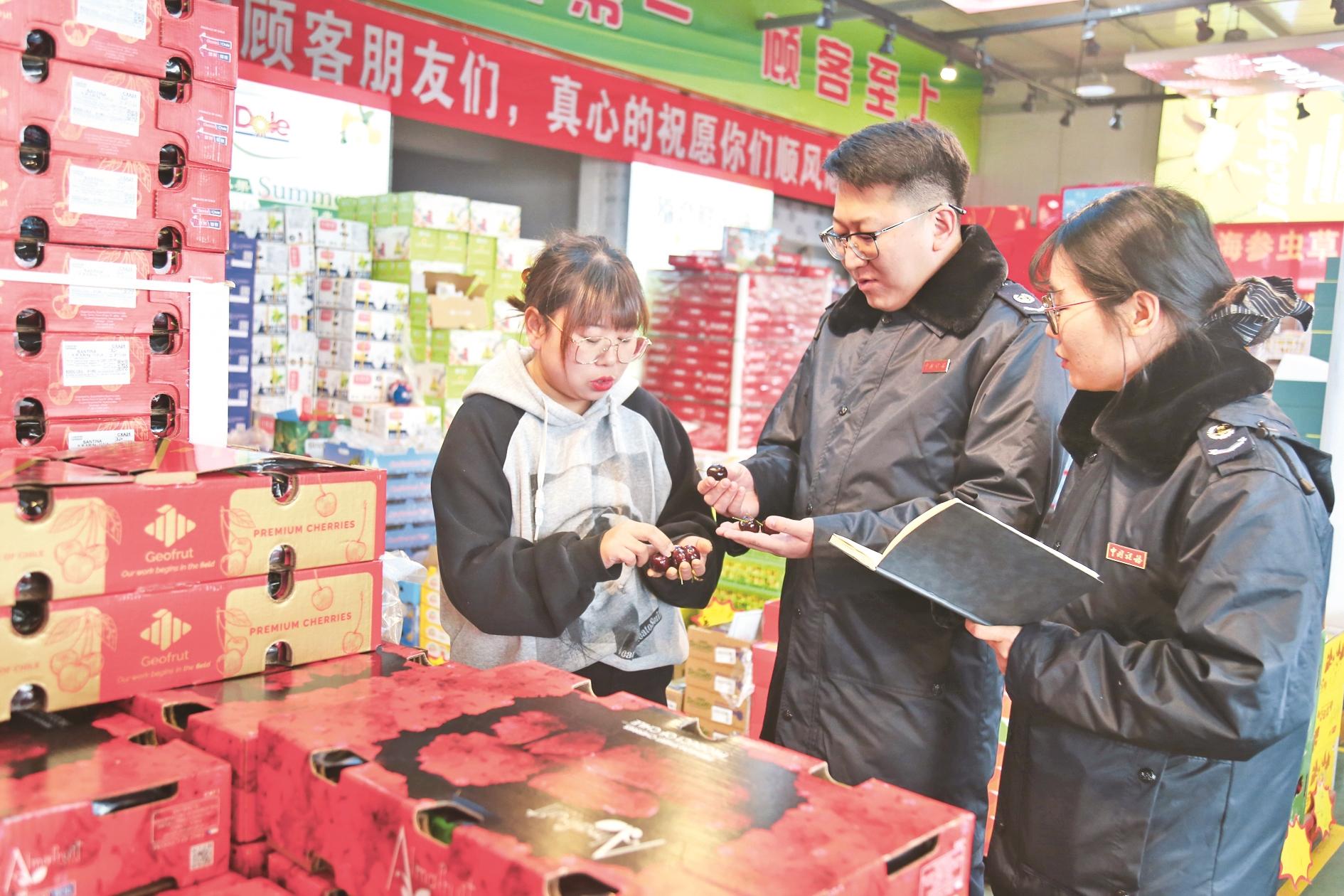 乌海高新技术产业开发区税务局强化日常税源管理,定期走访了解,掌握商户生产经营数据变化,及时进行政策辅导。图为税务干部走访水果批发商户了解其运营情况。 (丁媛媛 摄)