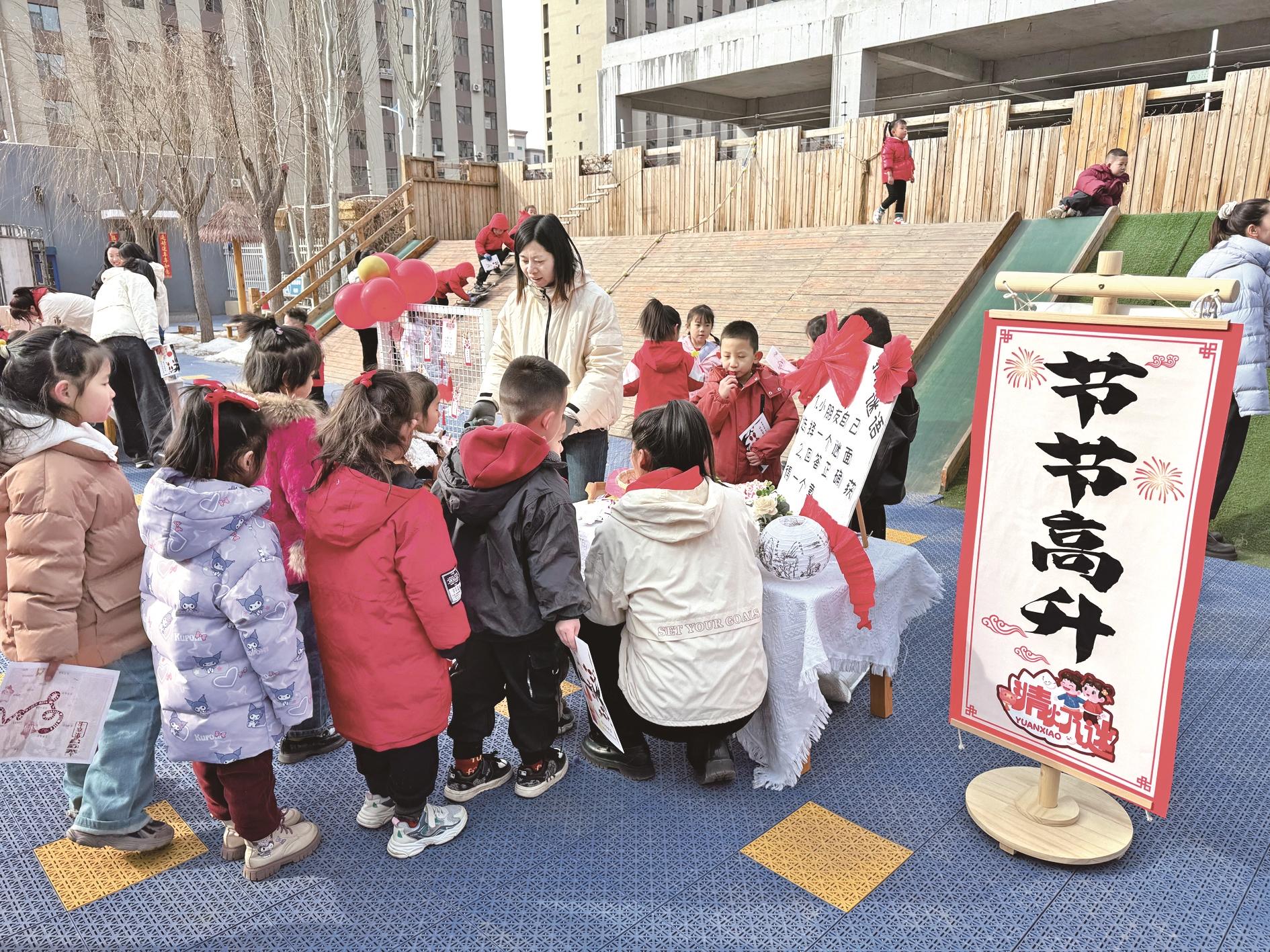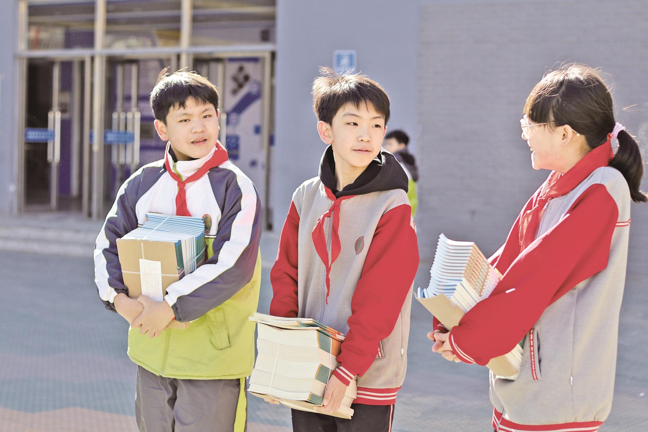 许久未见面的同学们互相说笑,交流自己寒假的收获。“我看了两本书。”“我看了三本,比你看得多,哈哈……”校园内,同学们互相说着自己寒假生活中有趣的事,与伙伴们一起分享喜悦。