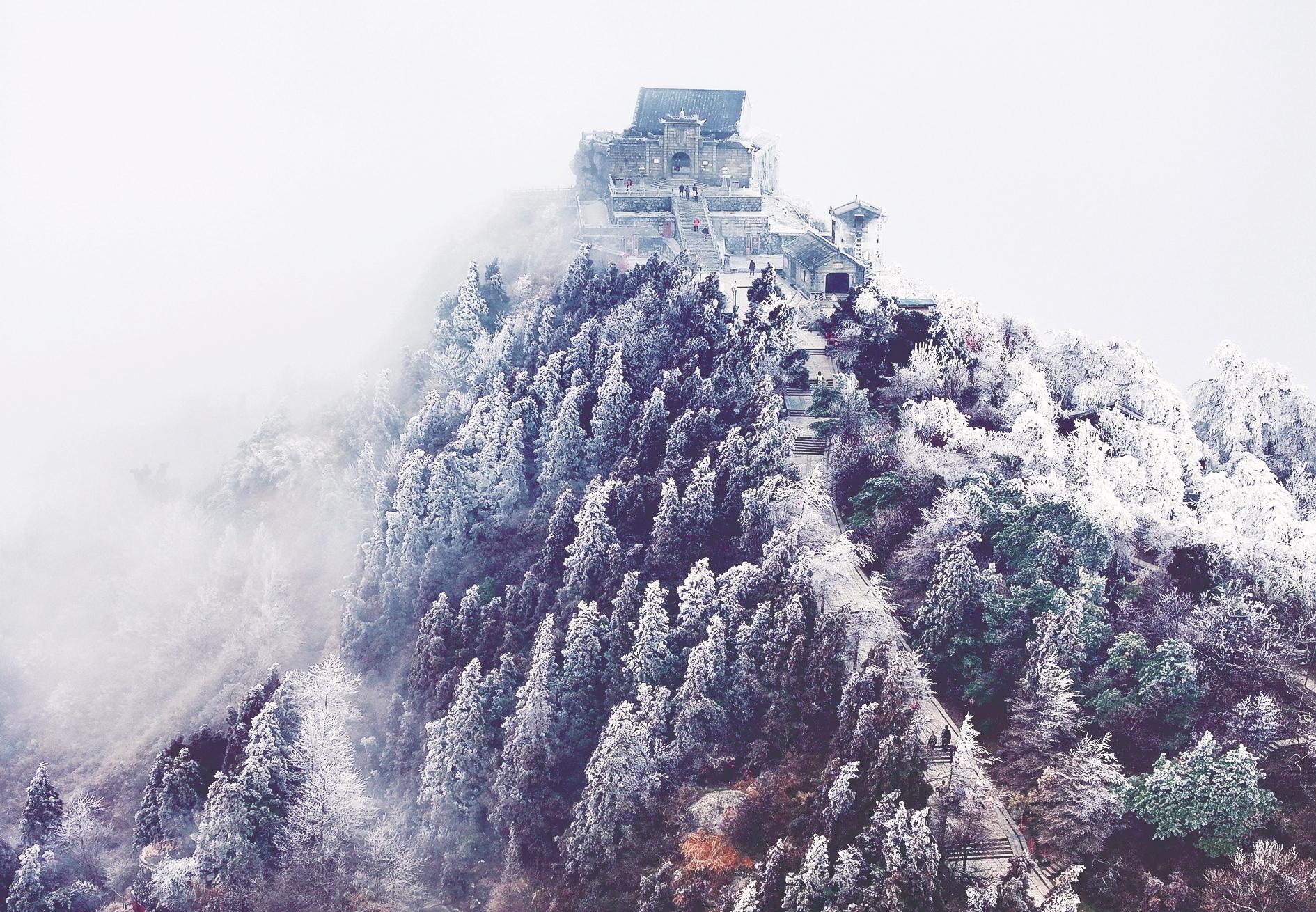 这是2月24日在湖南省衡阳市南岳衡山风景区拍摄的雪景。近日,我国多地出现降雪天气,春雪飘落大地,神州处处美景。 新华社发(曹正平 摄)