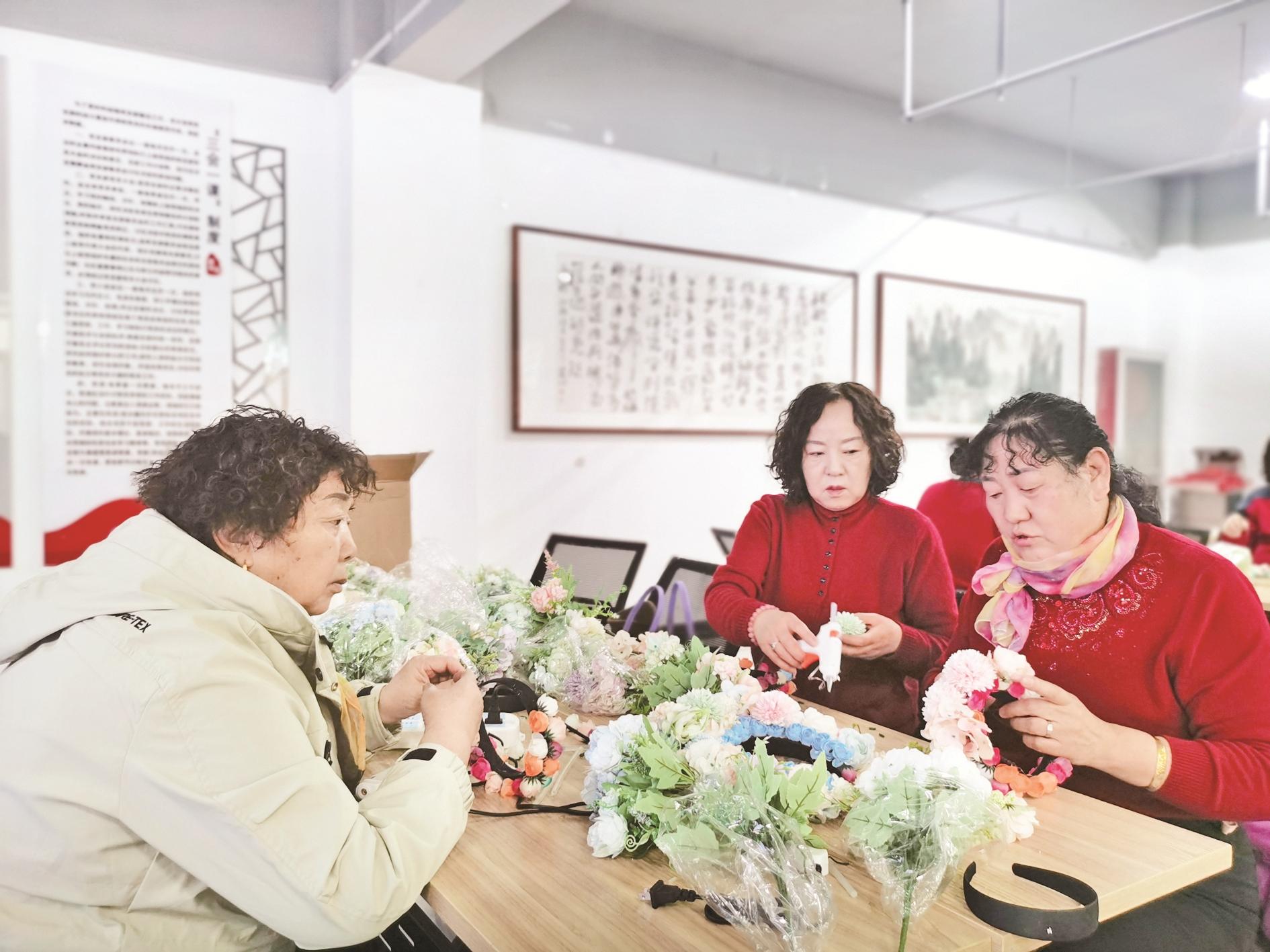 2月28日,海勃湾区新华街道清泉社区开展“簪花雅韵映清泉,巾帼巧手展风姿”妇女节簪花活动。 (段维娜 摄)