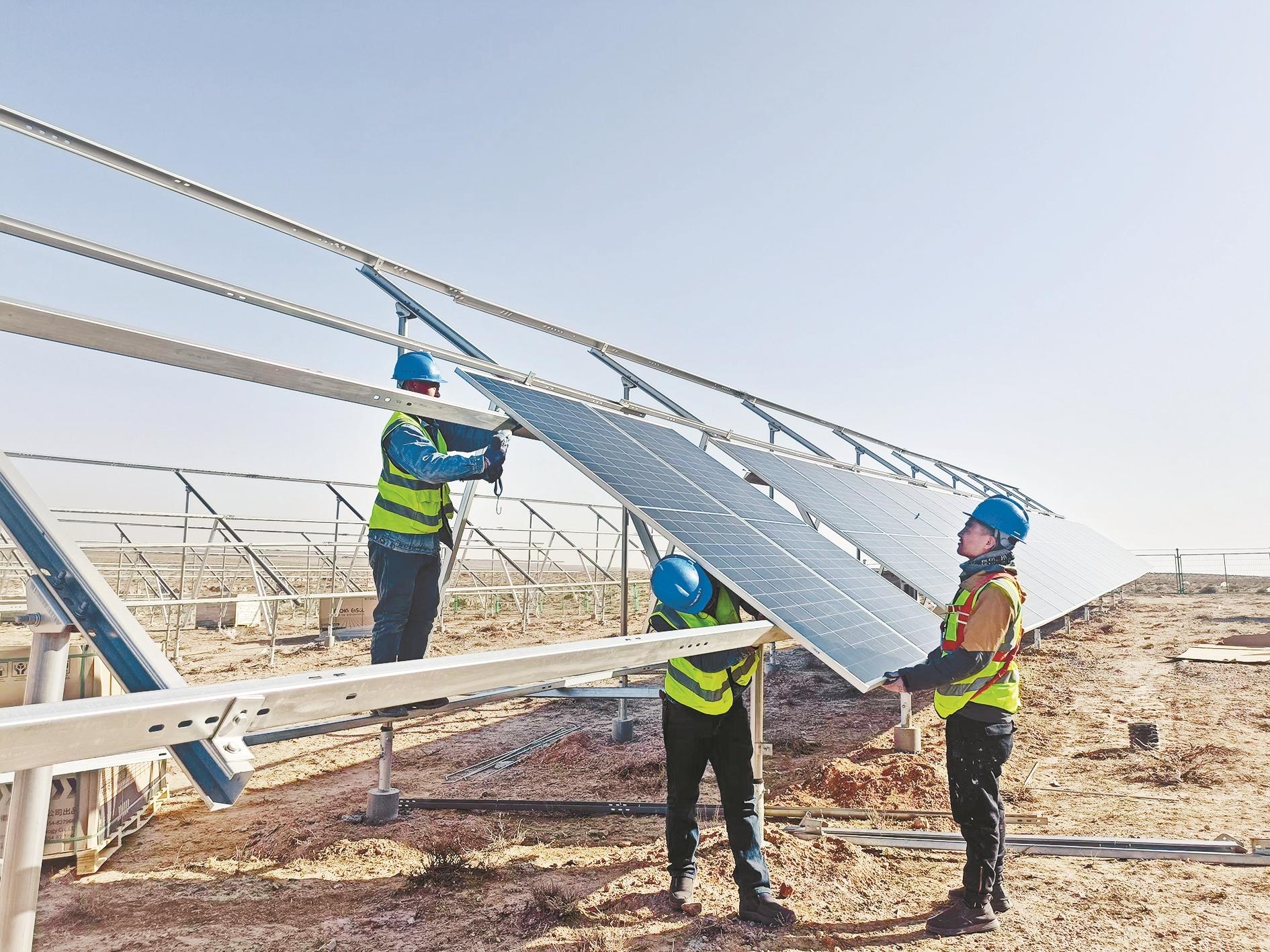 光伏发电项目负责人荆延成说:“目前,我们正在进行组件、支架和电器设备安装等工作,整体进度已完成30%,光伏厂区力争年底前全部并网发电。”