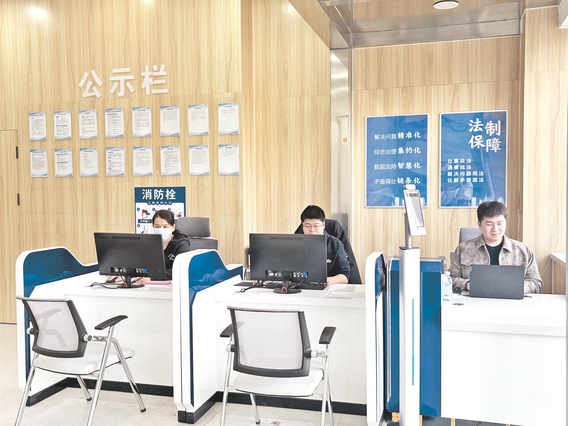 聚焦“一站式”,强化资源整合。采取“一窗口受理、一揽子调处、一平台承载”模式,建立健全入驻部门间的协调调度机制。在受理大厅,6个无差别接待窗口和3个预约接待窗口整齐排列,公、检、法、司、信访、住建、人社、妇联等9个部门30人常驻,民政、卫健、教育、土地征收、物业服务、工会等7个部门轮驻,其他部门单位随叫随驻。高效的资源整合,实现了矛盾纠纷化解一站集成,让群众省心省力。