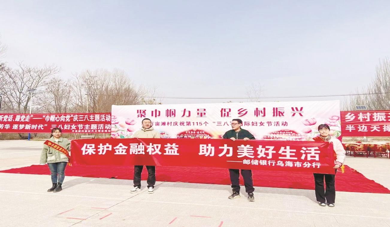 邮储银行乌海市分行联合海南区巴音陶亥镇万亩滩村村委会和邮政集团乌海市分公司,在万亩滩村共同开展“聚巾帼力量 促乡村振兴”金融消费者权益保护教育宣传活动,详细讲解金融消费者八项权益、个人信息保护、防范非法集资、防范电信诈骗等金融知识,并对扰乱市场秩序、侵害金融消费者权益的非法中介活动开展风险提示,帮助社会公众增强风险意识和提升防范能力。