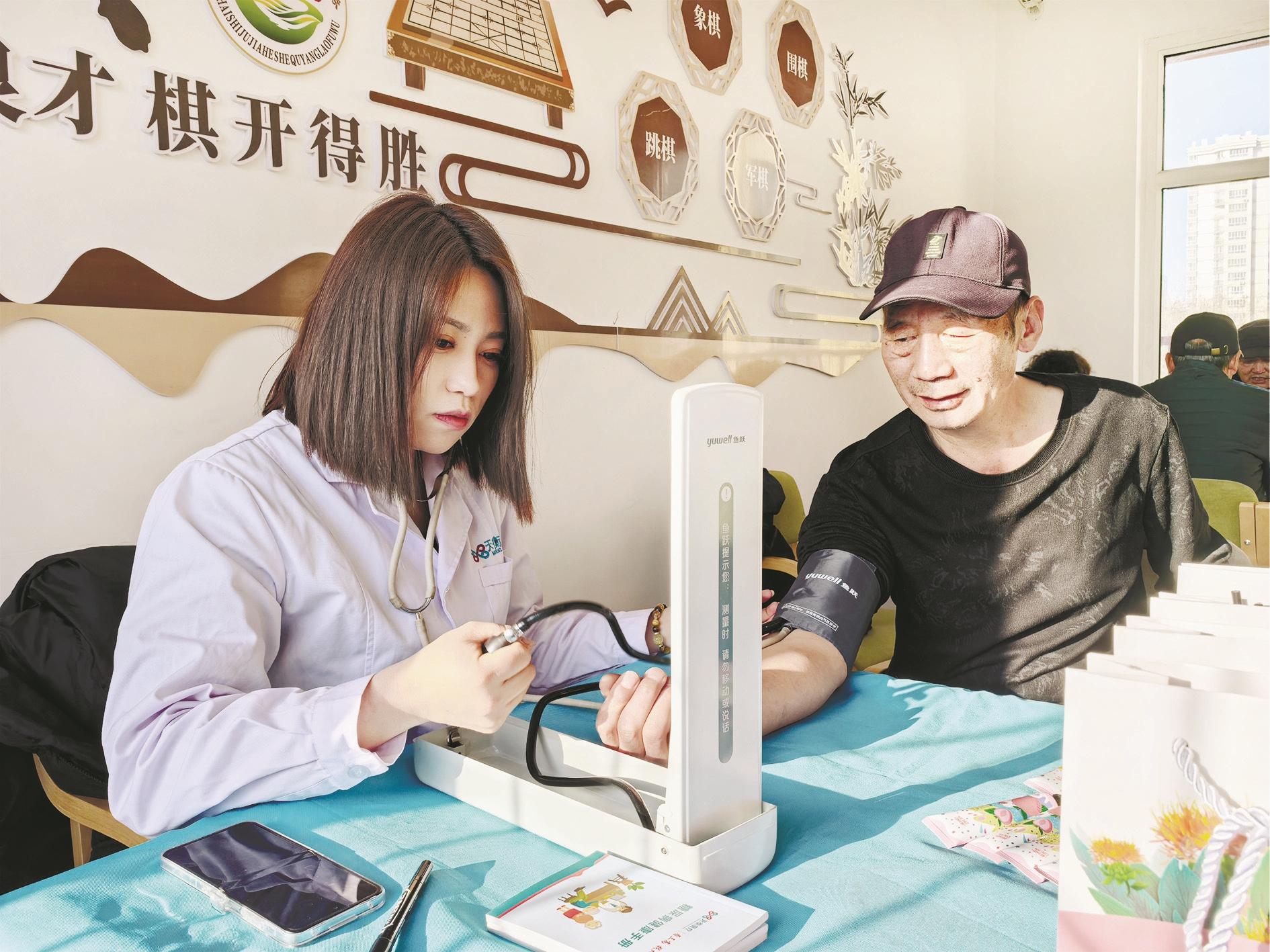 近日,海勃湾区滨河街道白楼社区开展“五进小区”暖心活动,志愿者免费为辖区居民测血压、测血糖,受到了居民的连连称赞。(刘洋 摄)