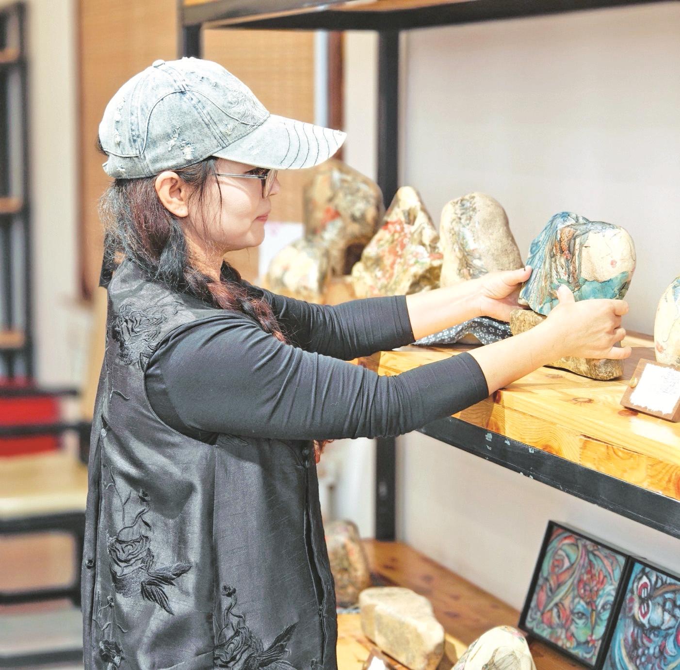 “黄河母亲般的形象激发了我的创作灵感,看着这些形态不一的黄河石,感觉每一块都有独特的故事,我想通过绘画将黄河母亲的恩泽表达出来。”鲁婷说。