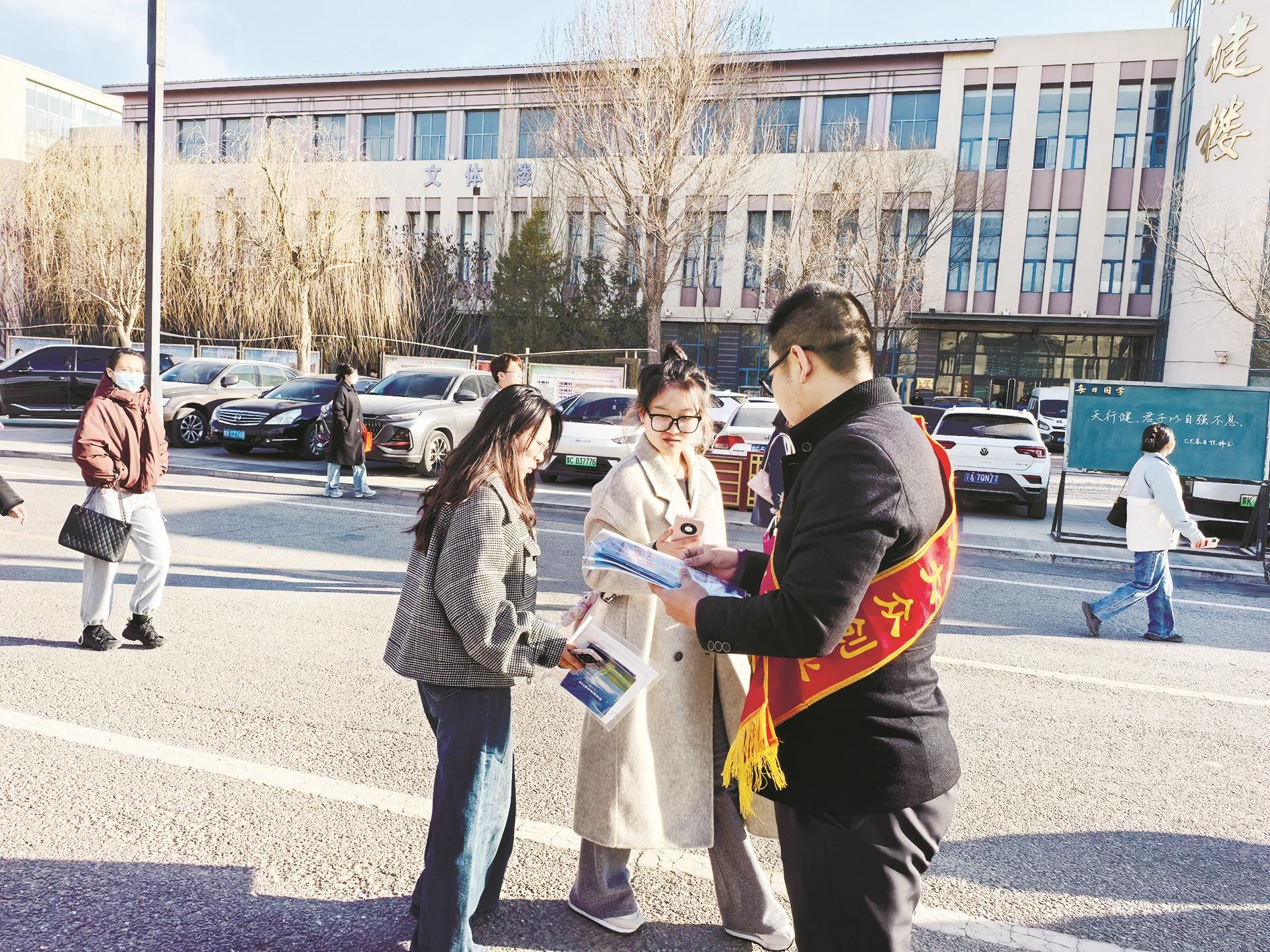 3月15日至16日,市人社局就业服务中心借助2025年内蒙古公务员笔试考试契机,在我市5个考点开展“就业政策送考场 助力考生梦启航”活动,向考生宣传解答就业、创业及人才引进等内容,提供就业招聘信息,进一步提升广大青年对我市就业创业优惠政策的知晓度。 (张楚研 摄)