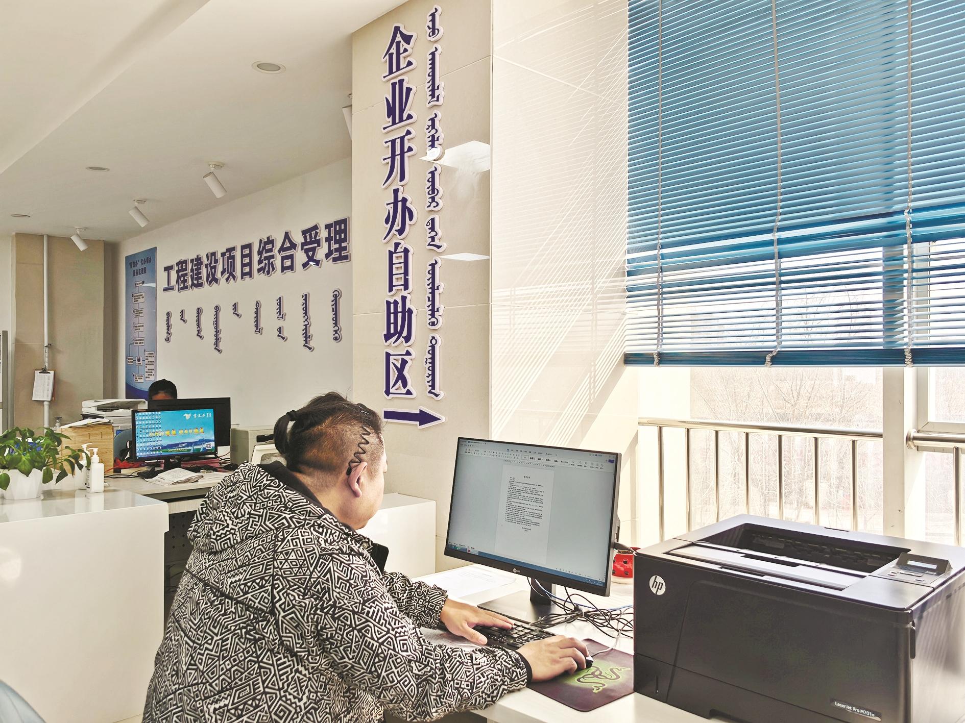 乌达区市民聂瑞打算开家服装店,3月20日下午,她来到乌达区政务服务中心办营业执照。聂瑞说:“3月10日提交了申请,前天就收到信息可以来取了。拿着身份证来企业开办自助区就能自助打印,真是太方便快捷了。”