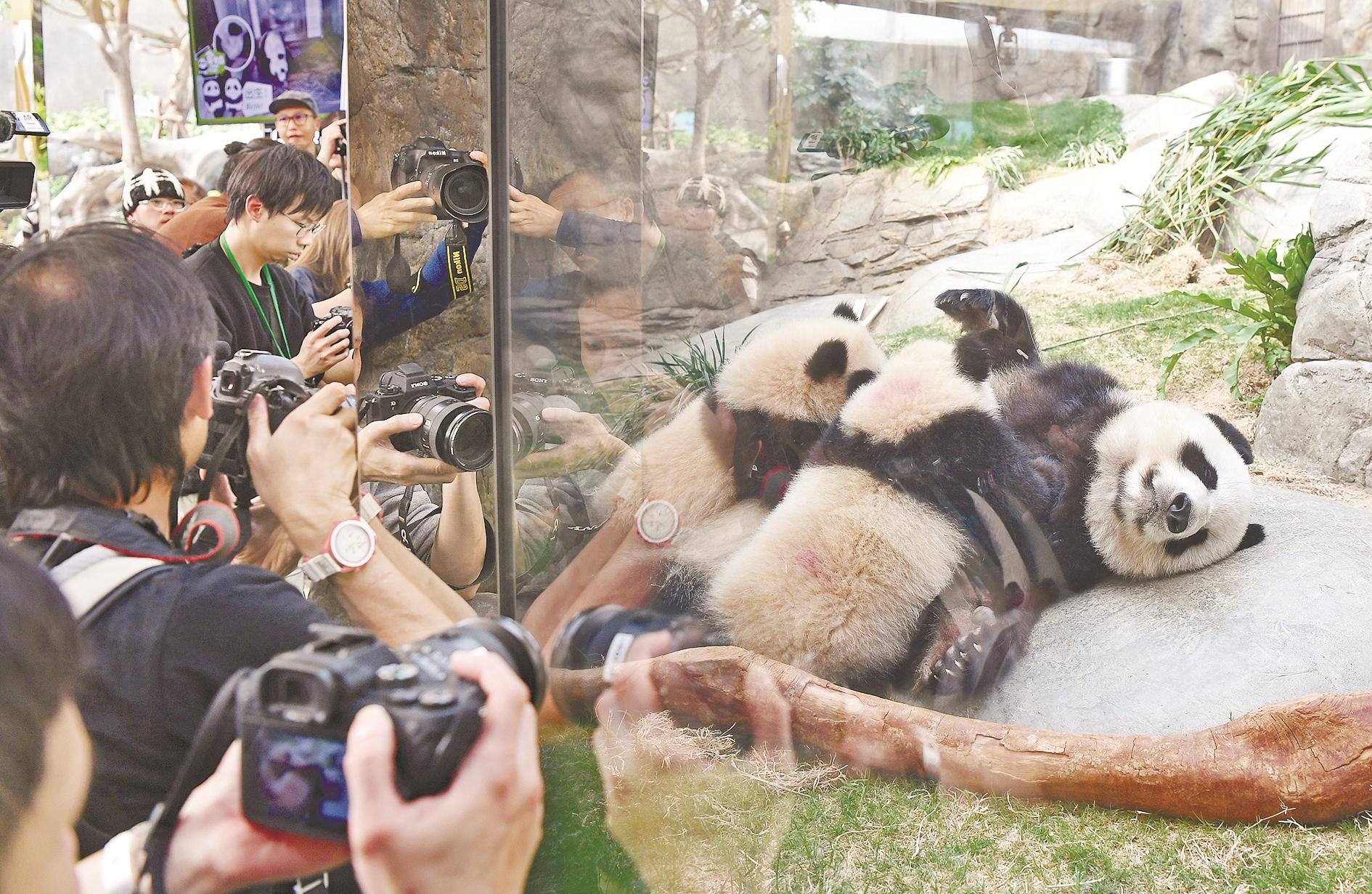香港海洋公园工作人员卢芷珊告诉记者,目前这对大熊猫龙凤胎是“好奇宝宝”,喜欢探索不同事物。它们在母亲身边可以学习一些人类无法教授的知识,如分辨气味等,帮助它们更好成长。为了让护理员能够紧密观察大熊猫宝宝的习性和及时提供帮助,“港产”大熊猫龙凤胎和妈妈在大熊猫之旅展馆中间位置的栖息地与访客见面。