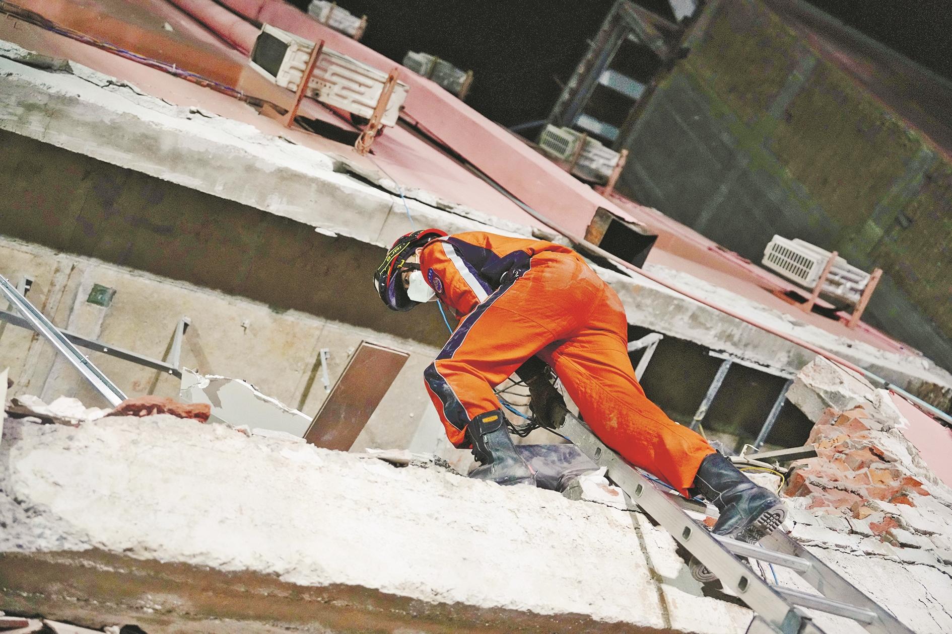 3月30日,在缅甸曼德勒,中国救援队队员在长城饭店开展救援。当地时间3月28日12时50分许,缅甸发生7.9级地震。中国救援力量随即与时间展开赛跑:集结、飞赴、抵进、施援……在曼德勒、在内比都、在仰光,都有中方救援队忙碌奋战的身影,与之相伴的,还有频频传来的幸存者获救的消息。 新华社记者 才扬 摄