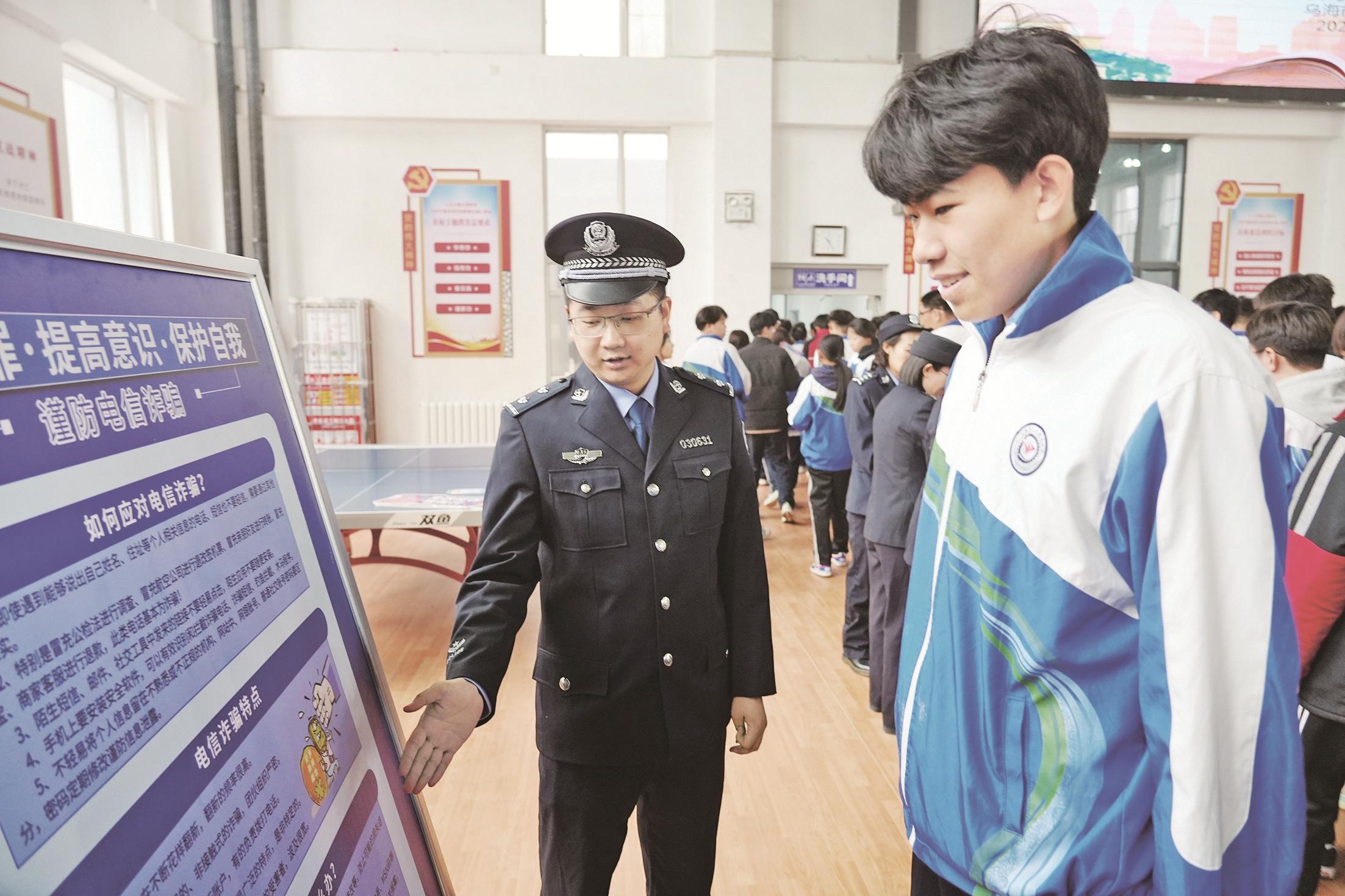 “我们通过情景模拟的方式,引导师生、家长主动学习反诈知识,通过模拟遭遇诈骗如何应对、发现其他同学疑似被骗如何劝阻等场景巩固所学知识,并鼓励学生向家人朋友宣传反诈知识,持续扩大反诈宣传覆盖面。”市公安局侦查中心民警孔繁盛说。