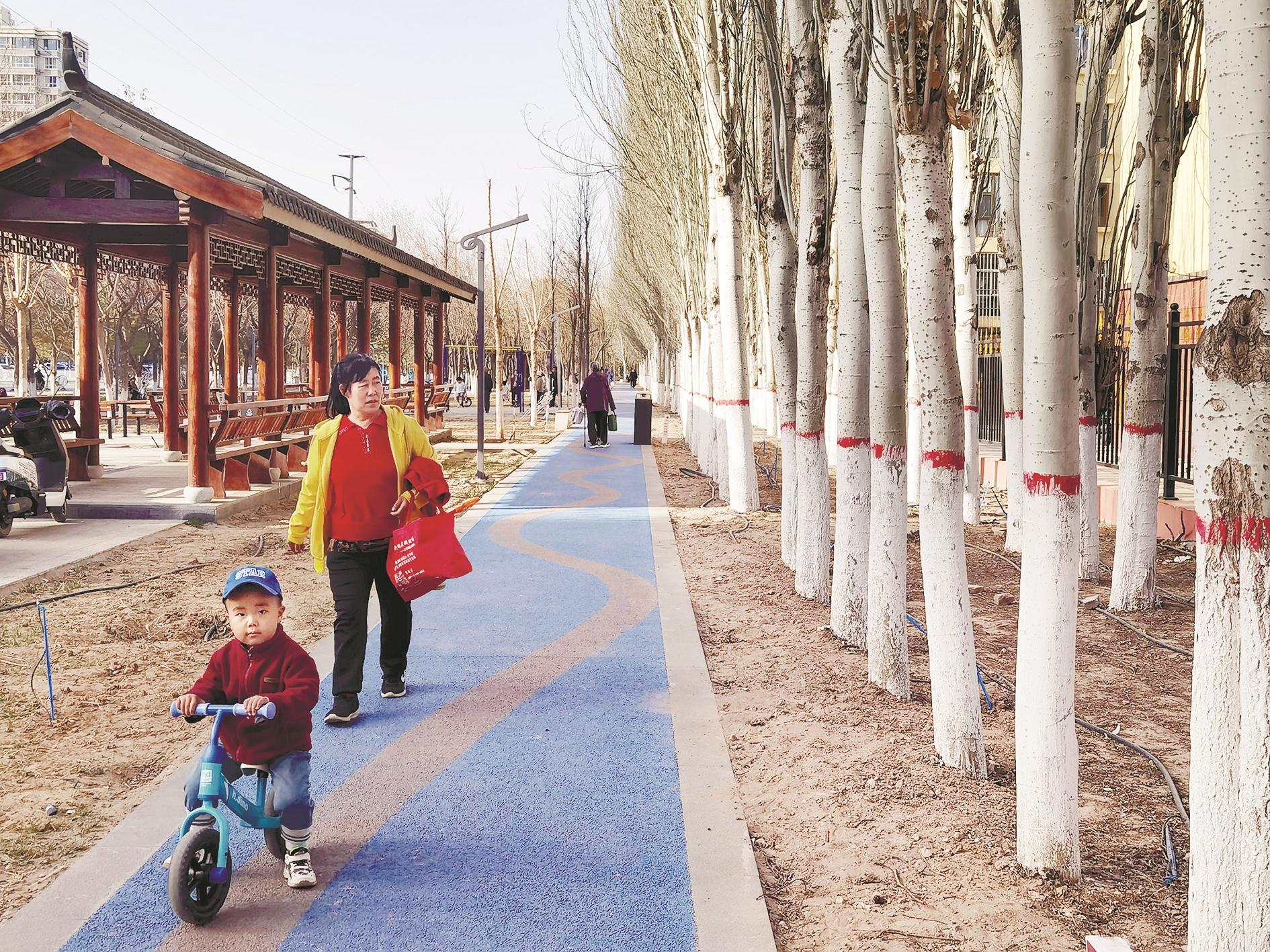 在乌达区,这样小而美的口袋公园则是星星点点地坐落在一个个小区周围。华美居小区口袋公园中,彩色步道让人眼前一亮,儿童乐园里欢声阵阵,健身器材一应俱全,林间各类彩叶树种装点其间。居民李美霞告诉记者,以前的小树林比较杂乱,路面老旧破损,健身器材就安装在树林中的地面上,连座椅都没有。“即便如此,这里仍是很多人休闲首选的地方。”她说,“如今这里大变样,人们在这绿色氧吧里一边呼吸着沁人心脾的绿色味道,一边锻炼身体,小小的口袋公园里,承载着居民幸福的生活。”
