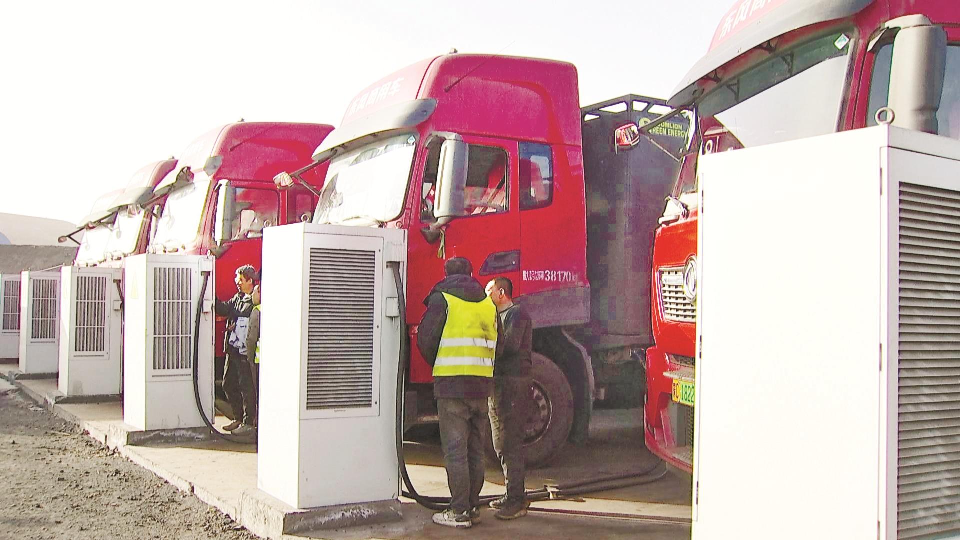 随着新能源重卡市场蓬勃发展,乌海海易通银隆新能源汽车有限公司加快建设一批高标准充电站。目前,该公司已建成12座新能源重卡充电站,为绿色物流注入强劲动力。(肖传军 摄)