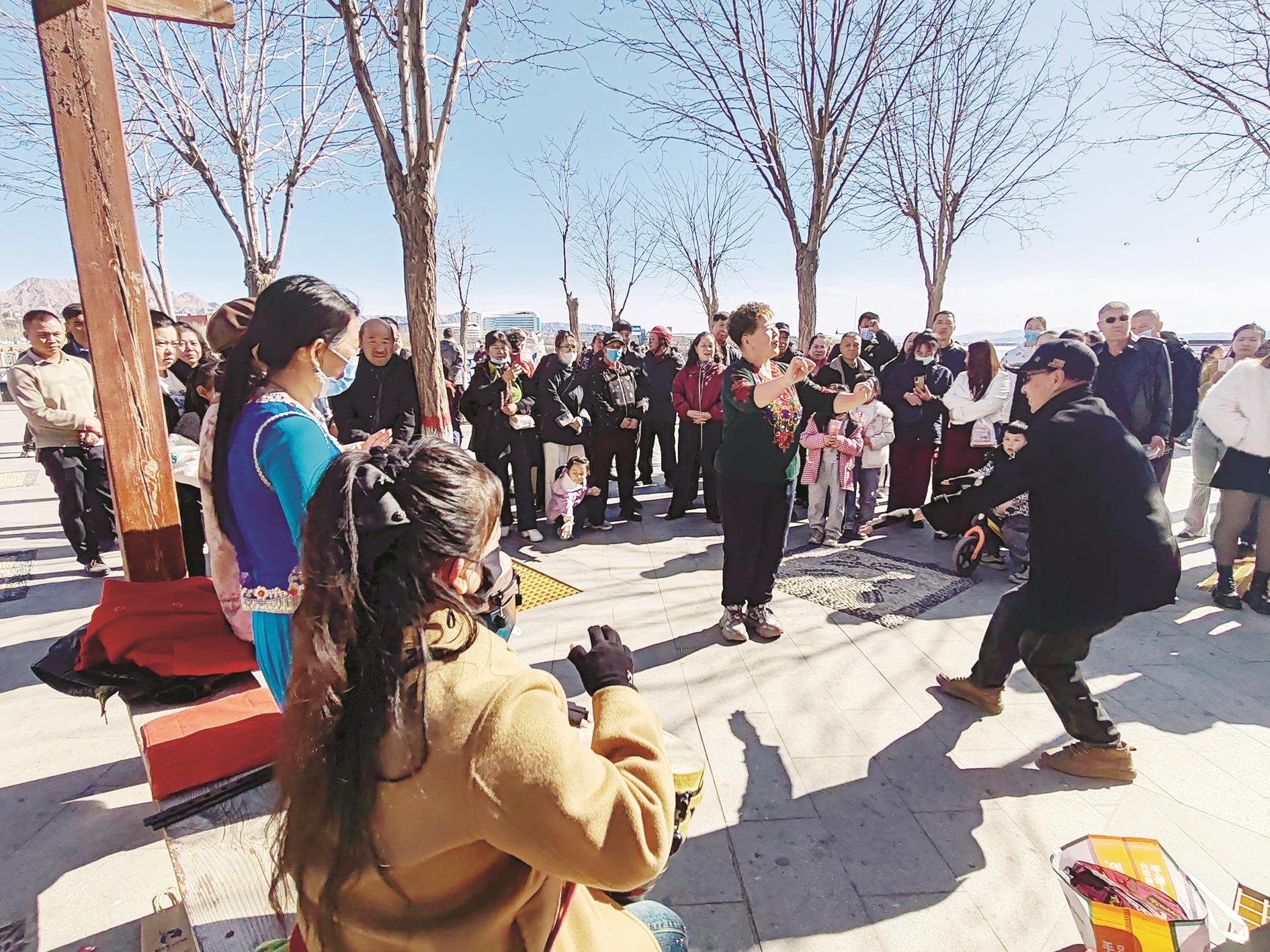 在乌海湖一号码头欣赏舞蹈,感受春光美好。