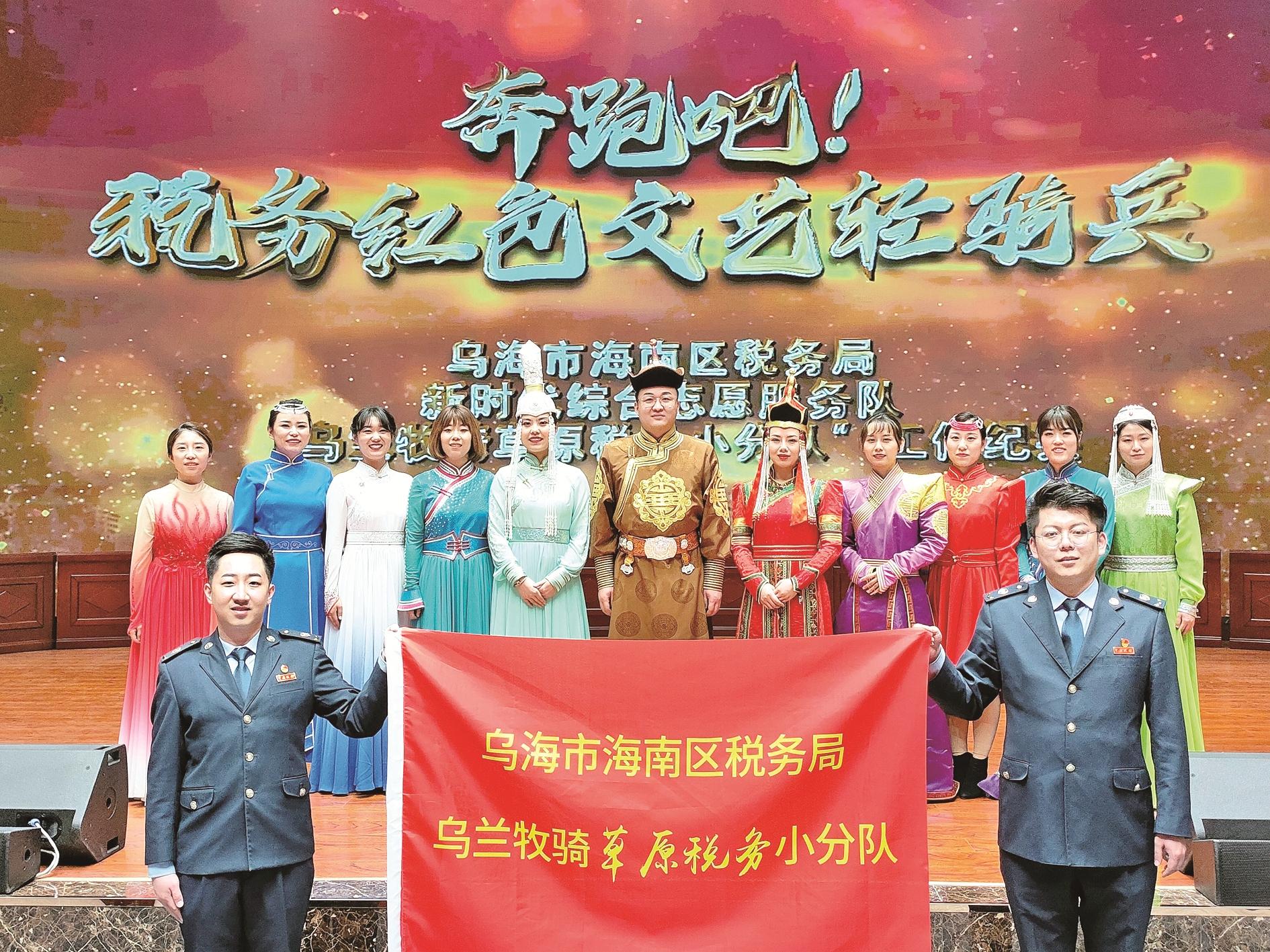 2019年3月,国家税务总局乌海市海南区税务局积极弘扬乌兰牧骑的优良传统,在全国税务系统率先扛起乌兰牧骑的旗帜,成立了乌兰牧骑“草原税务”志愿服务小分队。这支队伍将文化惠民演出与税收宣传作为工作的着力点,从人民群众关注的税收政策中挖掘创作灵感,从优秀丰富的民族民间文化传统里汲取养分,逐步成长为宣传党的声音和主张、服务基层群众、推动新时代文明实践、铸牢中华民族共同体意识、弘扬新时代精神的先锋力量。