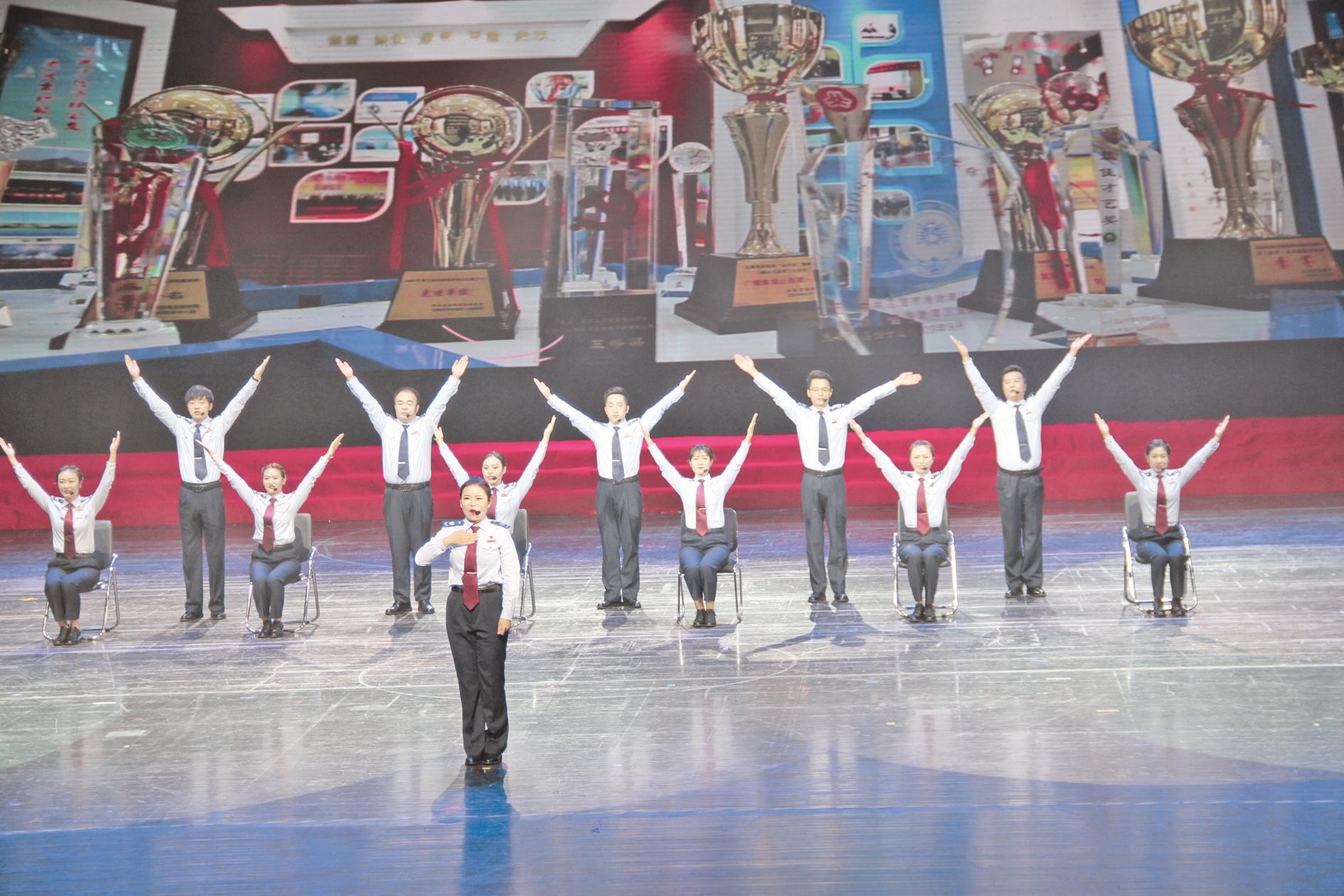 乌兰牧骑“草原税务”志愿服务小分队表演自创节目《办税厅阵线联盟》。