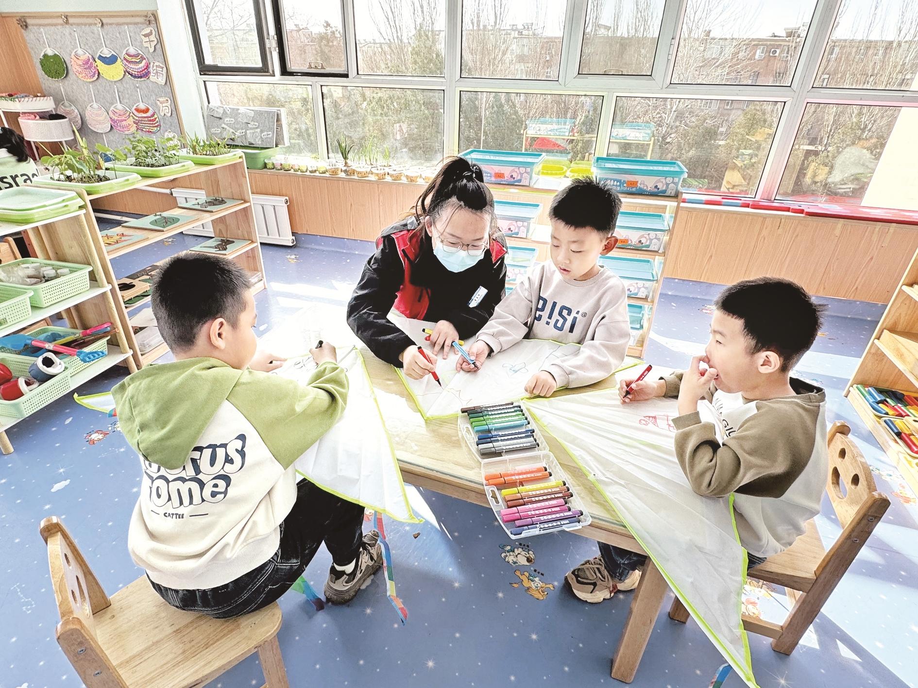 共筑绿色未来,播种生态希望。为了增强青少年儿童环保意识,积极践行绿色发展理念,社校联动共建成长幸福园。社区工作人员创作“我是小小乌达娃,爱护环境靠大家。垃圾分类新时尚,人人尽责环境佳”的儿歌,与孩子们一同号召居民群众见“圾”行事,积极参与垃圾分类活动,齐出一份力,同尽一份心,共建绿色家园。3月31日,安居佳苑社区联合乌达区第三幼儿园共同开展“手绘风筝·共植希望”文明实践活动。活动中,志愿者与小朋友们一起种下“希望树”,让孩子们在实践中体验绿色生活,激发他们对环境保护的积极性,培养儿童“爱绿护绿兴绿”的环保理念。“我们幼儿园时常会和社区共同举办一些有意义的社会实践活动,通过参与活动,孩子们可以亲身体验社会生活、了解社区环境,培养良好的社会交往能力。”乌达区第三幼儿园党务主任孙春园说。