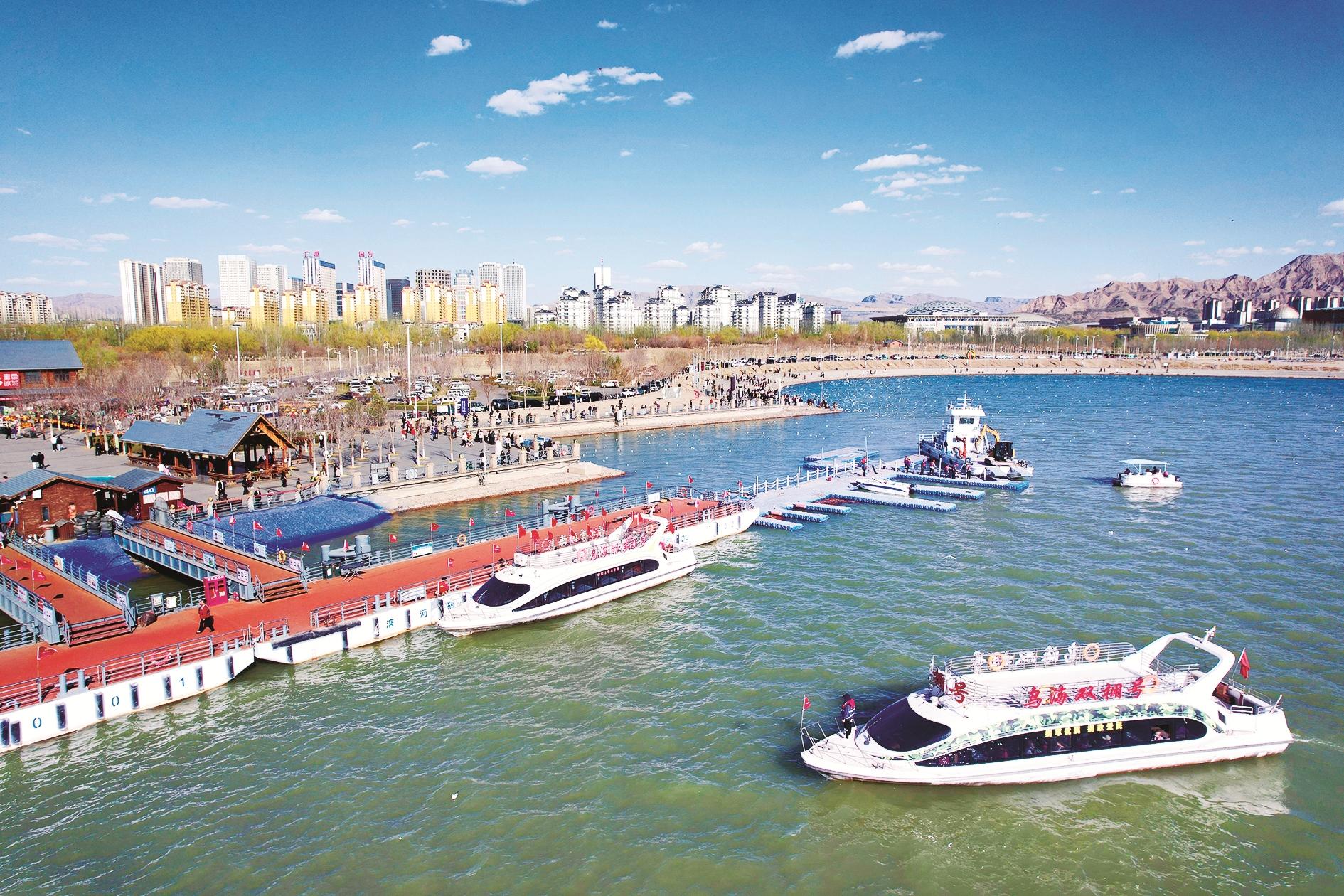 春光正好,出游正当时。时下,不少市民走到户外踏青、游玩。图为市民在乌海湖畔享受美好春光。(王超 摄)